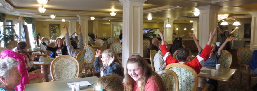Seniors and students alike were singing and dancing in their chairs. We even had a few students get up and dance for the seniors !!!!