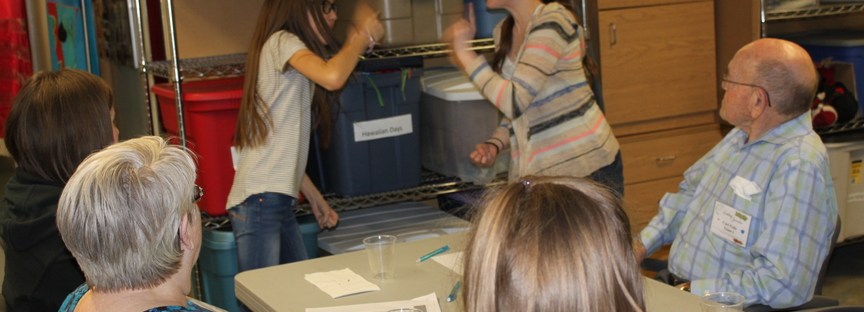 The students from École Our Lady of Perpetual Help Catholic School (OLPH) and the seniors from Clover Bar Lodge at their Charades Visit.