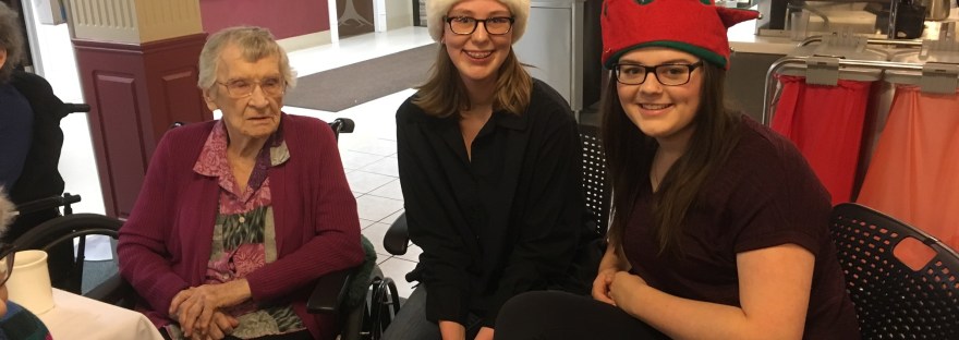 Sherwood Care invited Linking Generations students to take part in their annual “Christmas Celebration of Lights” on November 23. Students helped to serve refreshments and were able to visit with the seniors. Residents gathered in the dining room to see the beautiful lights and decorations in the courtyard, and to enjoy listening to an entertainer perform Christmas music.