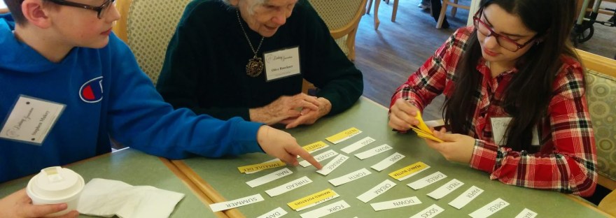 Our seniors and students explored the different slang expressions used by youth, young and middle-aged adults, and seniors to describe the same items or ideas over the past 70 years. This activity heightened the awareness of how our written and spoken language has changed over the past 10 to 70 years.