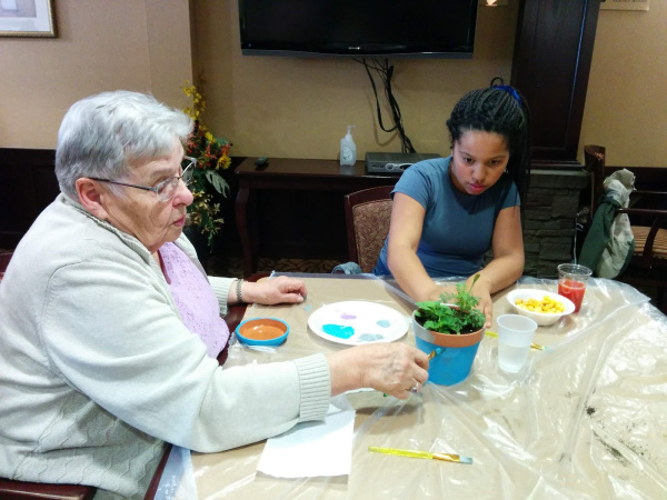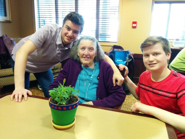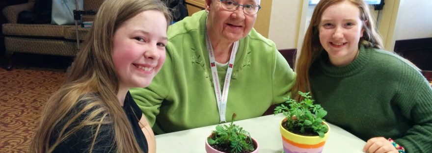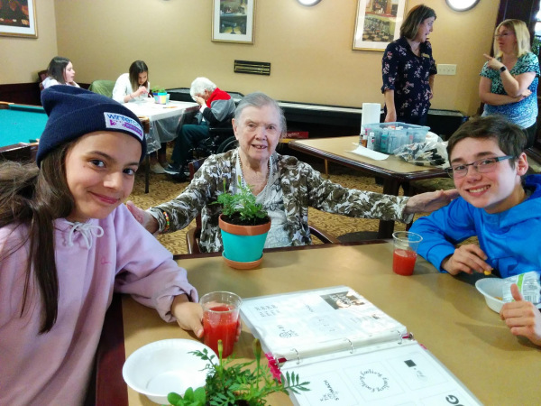 Many seniors are isolated, and they welcome spring eagerly. Spring allows our seniors to venture back outside, sit in courtyards or relax with the sun shining on their face. Our planting visit with our seniors and students brought excitement and anticipation of placing their newly potted plants on window sills, balcony’s and even in the courtyards.