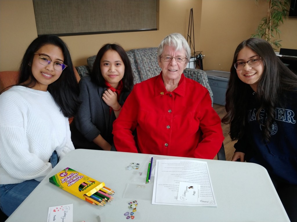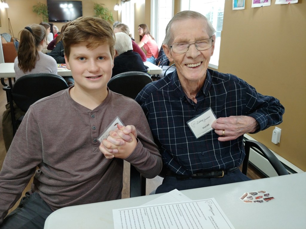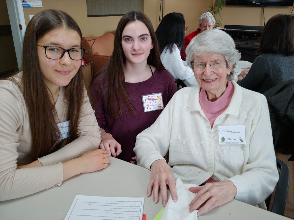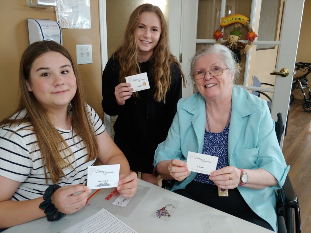 Linking Generations is continuing to make a difference in our community by providing Intergenerational Connections to our youth and seniors. Intergenerational connections are proven to enrich the lives of both youth and seniors in long-lasting and meaningful ways. When youth find ways to engage and develop relationships with the elderly, these experiences can build self-esteem, develop leadership skills, and encourage a lifelong commitment to volunteering. For seniors, intergenerational connections provide the opportunity to transfer knowledge and wisdom, acknowledge self-worth, and feel they are contributing members of society. Seniors from Chartwell Country Cottage visit for the first time with students from ABJ High School