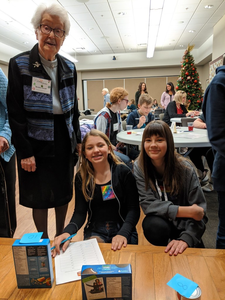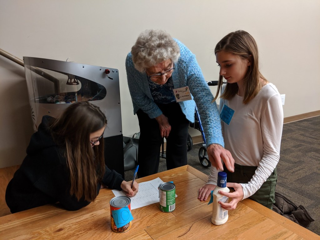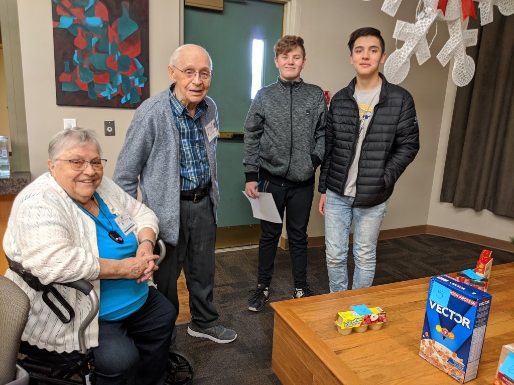 Pictured here are students from Lakeland Ridge Junior High School and their linked seniors from Heartland Housing – Silver Birch Manor and Lodge.