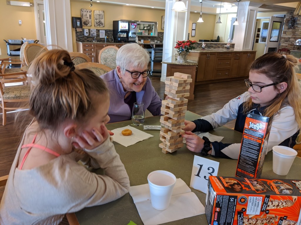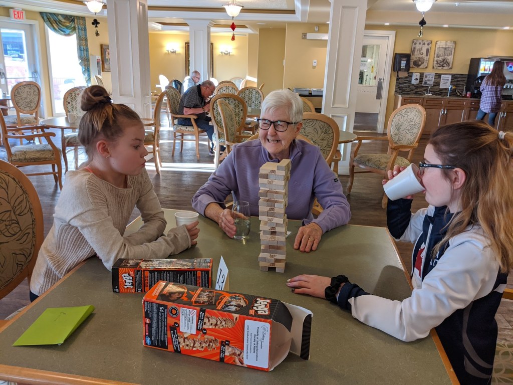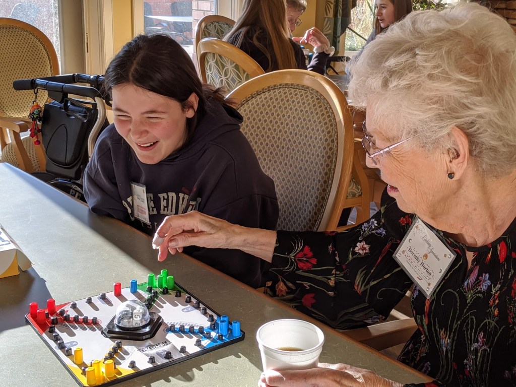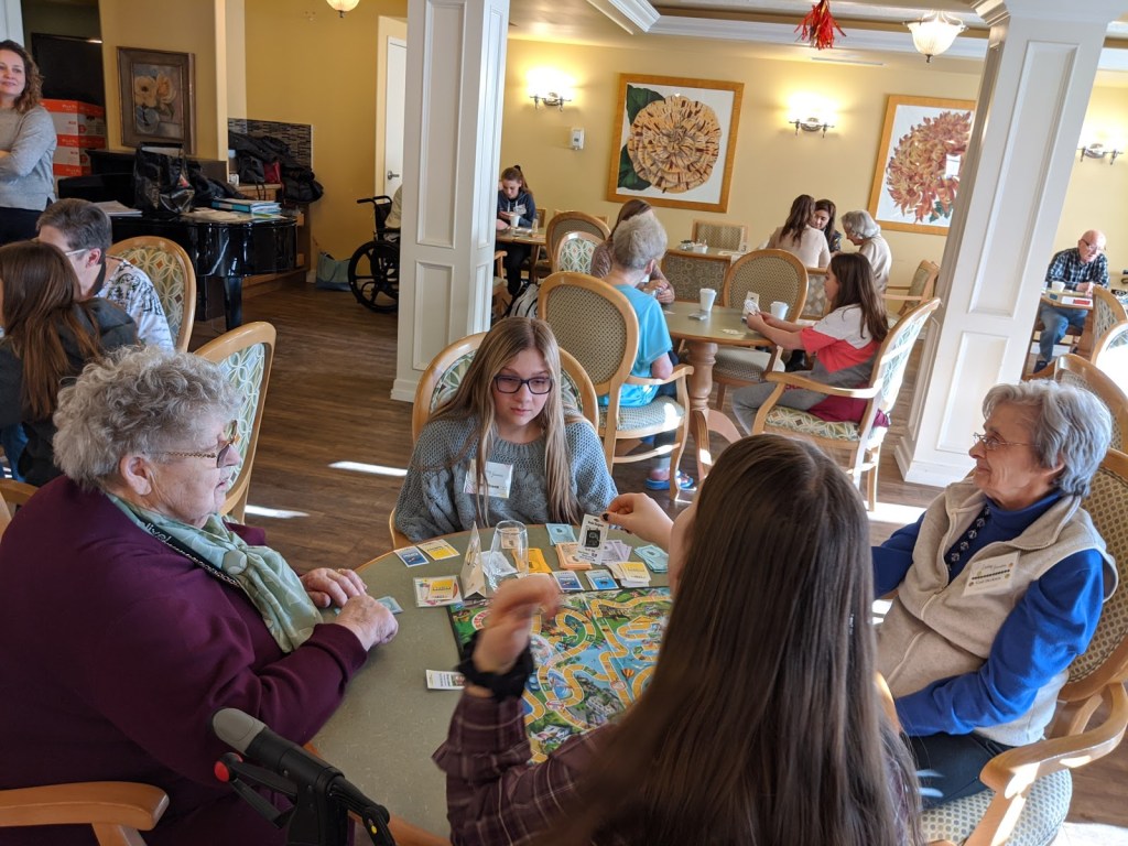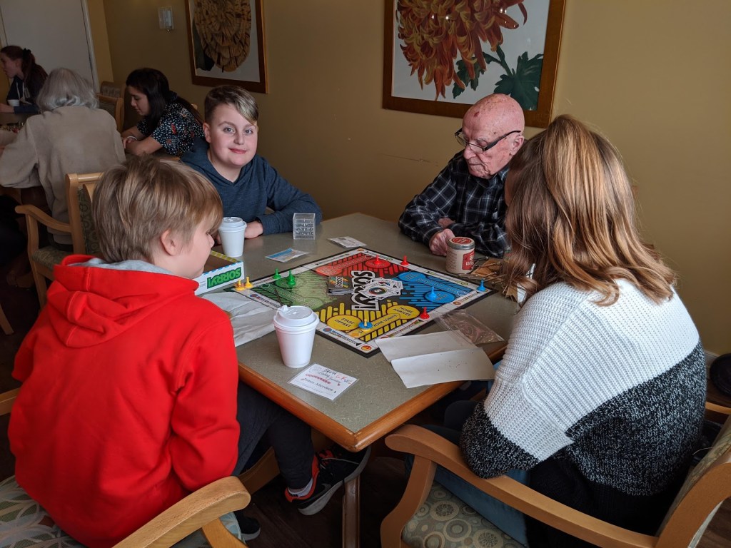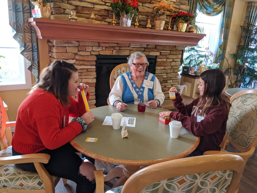 Our students from St. Theresa share their holiday stories with their ‘linked’ seniors from Bedford Village , while challenging each other to win the game !