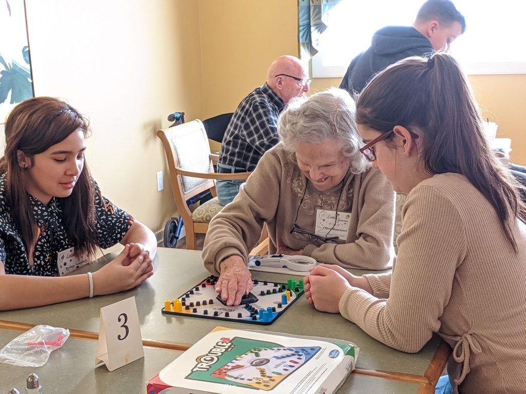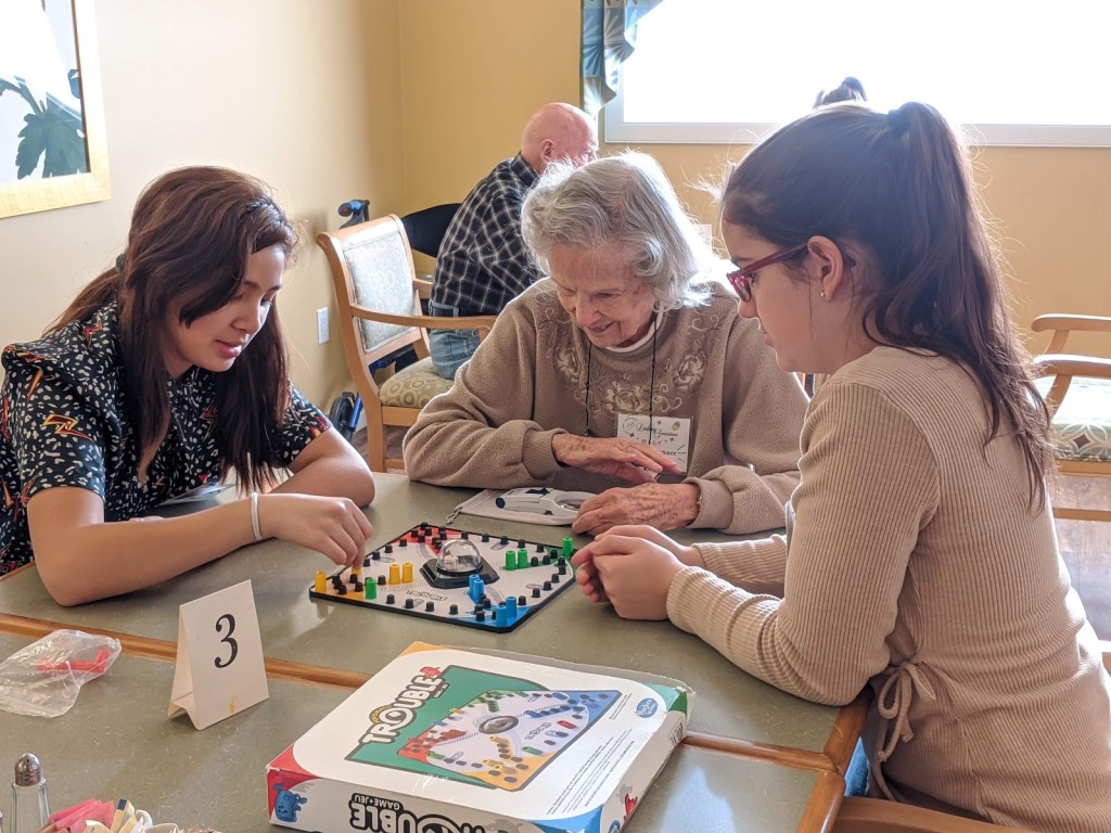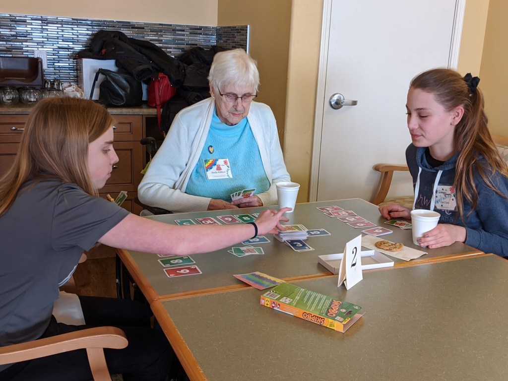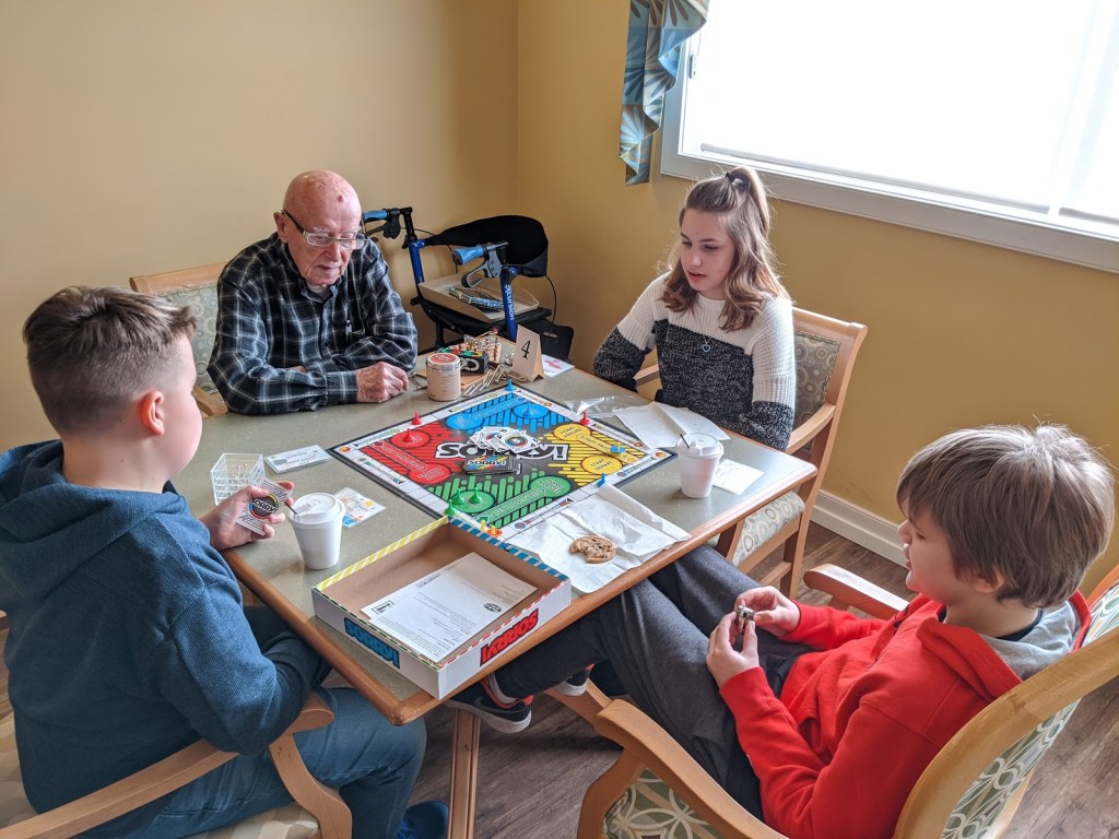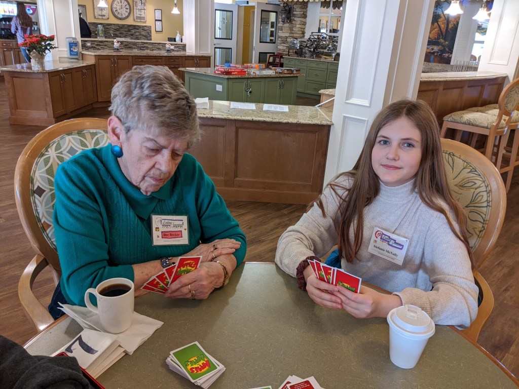 Our students from St. Theresa share their holiday stories with their ‘linked’ seniors from Bedford Village , while challenging each other to win the game !