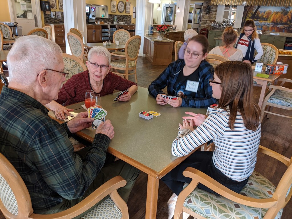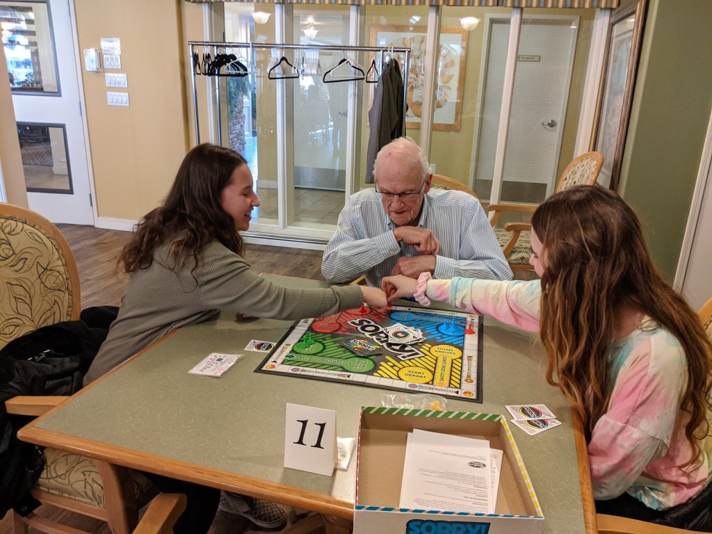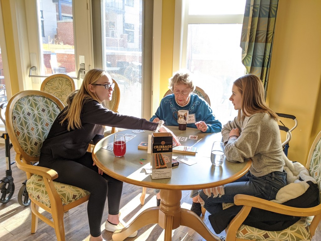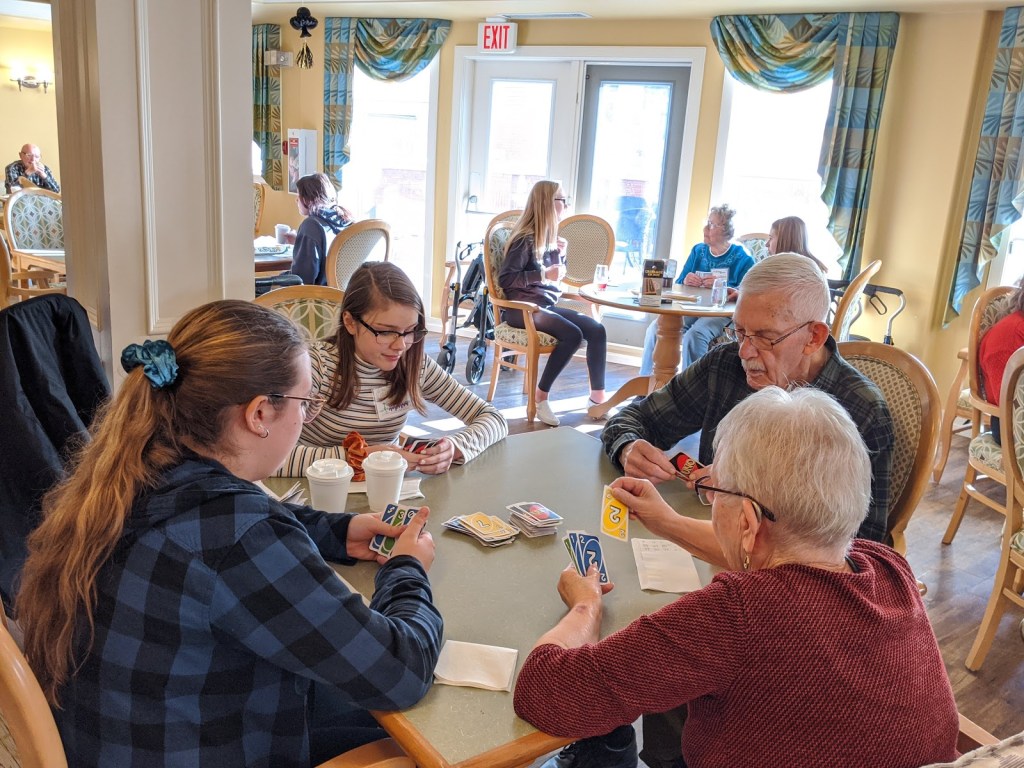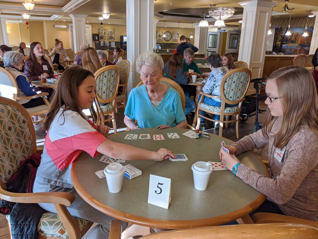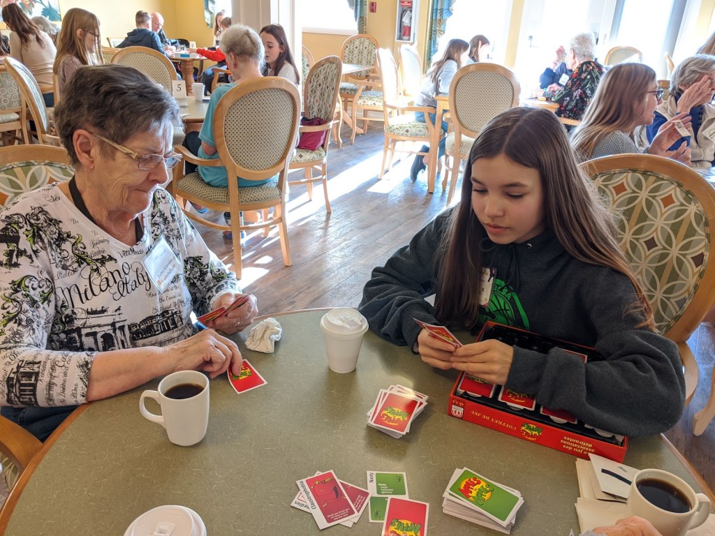 Our students from St. Theresa share their holiday stories with their ‘linked’ seniors from Bedford Village , while challenging each other to win the game !