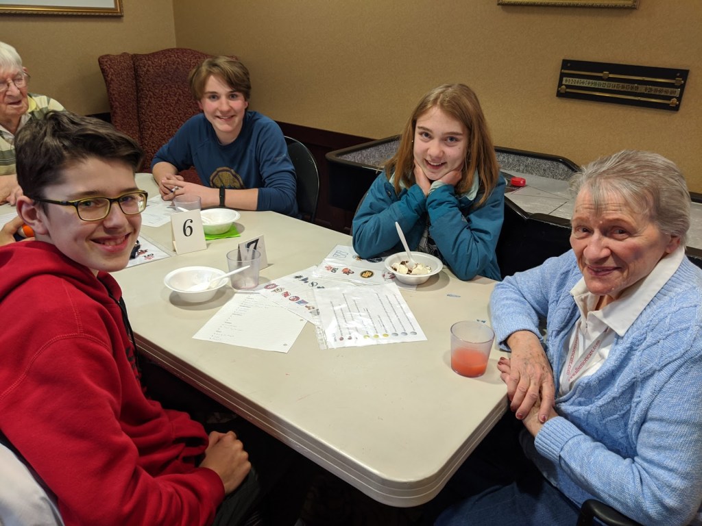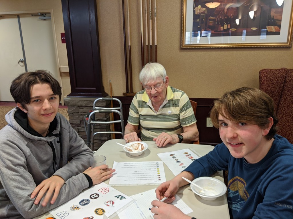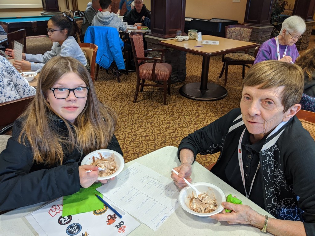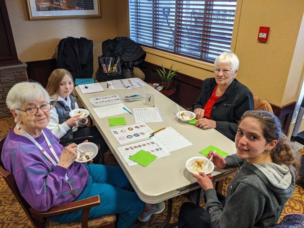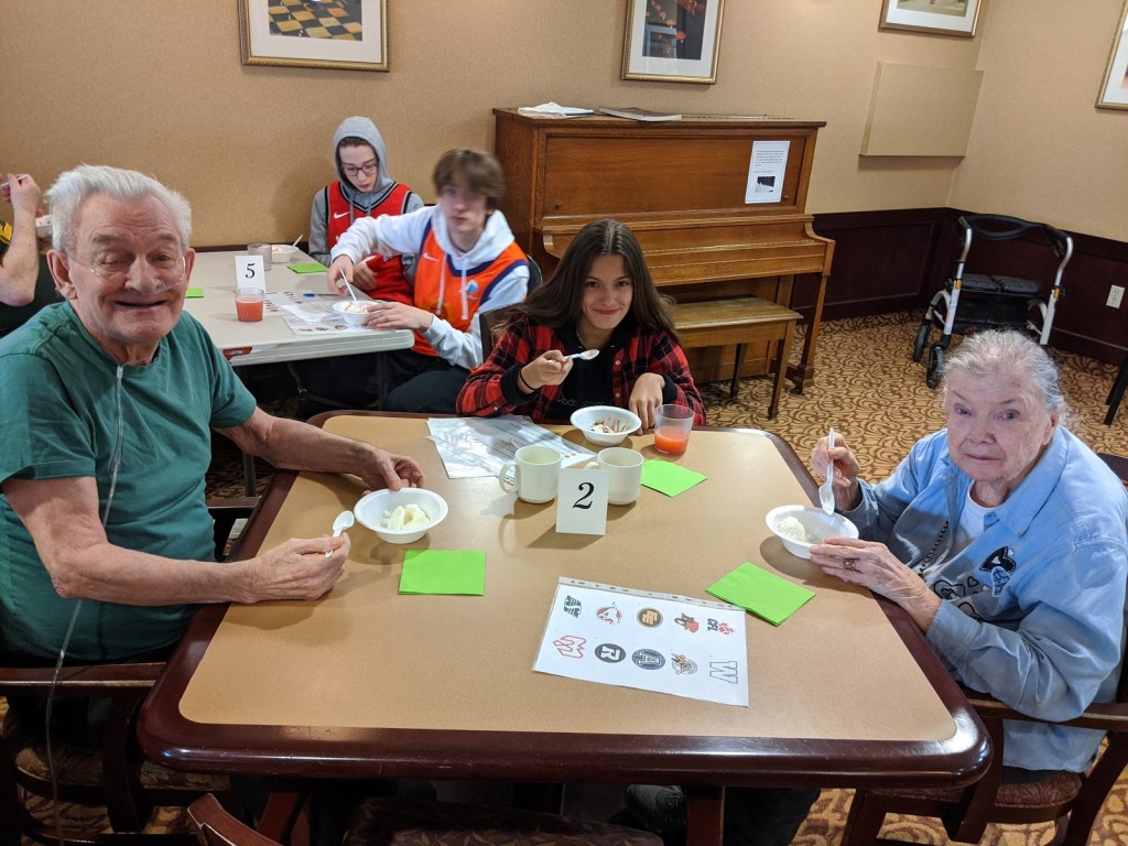 Seniors and students enjoyed a Sports Day and impressed each other with their sport related knowledge. Some even wore their favorite team jersey/colors and hats while other shared special sport memorabilia with each other. Then, just like attending a game – everyone enjoyed ice cream sundaes!!