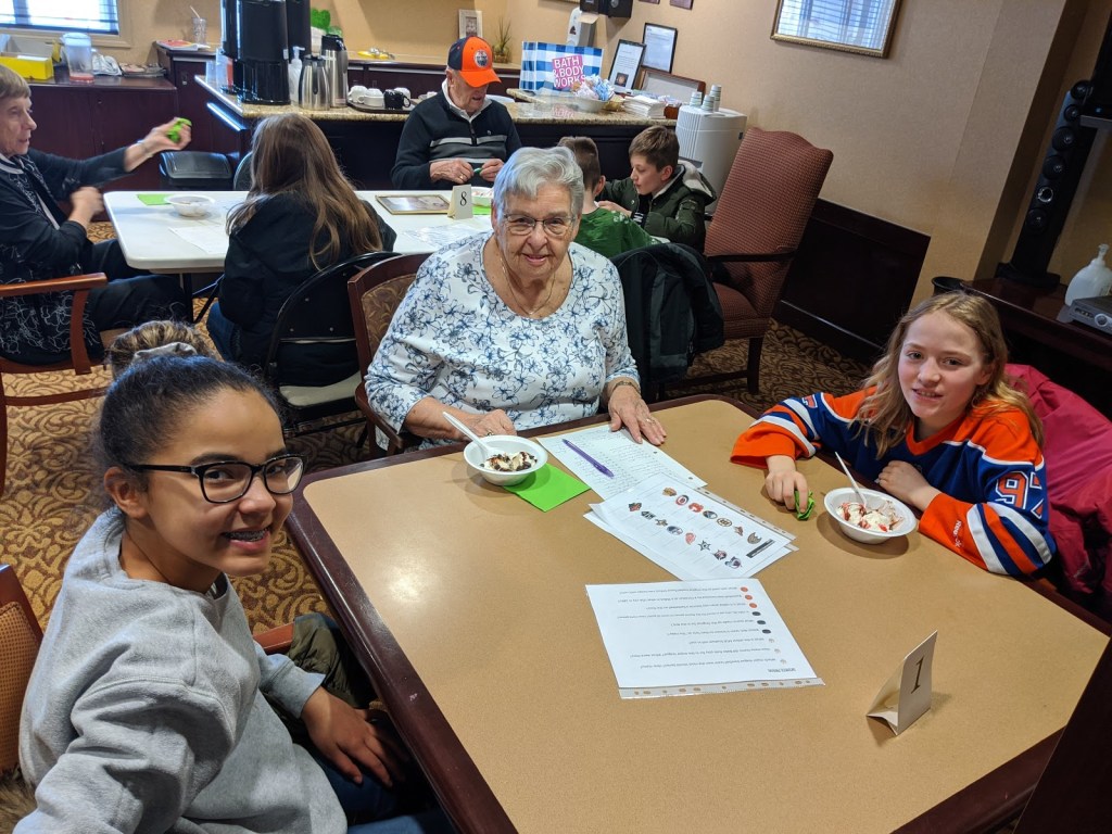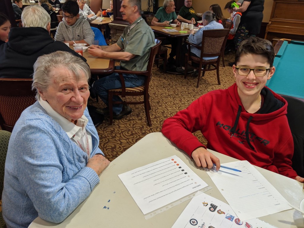 Seniors from Summerwood Village Retirement Residence with students from École Our Lady of Perpetual Help Catholic School (OLPH) .