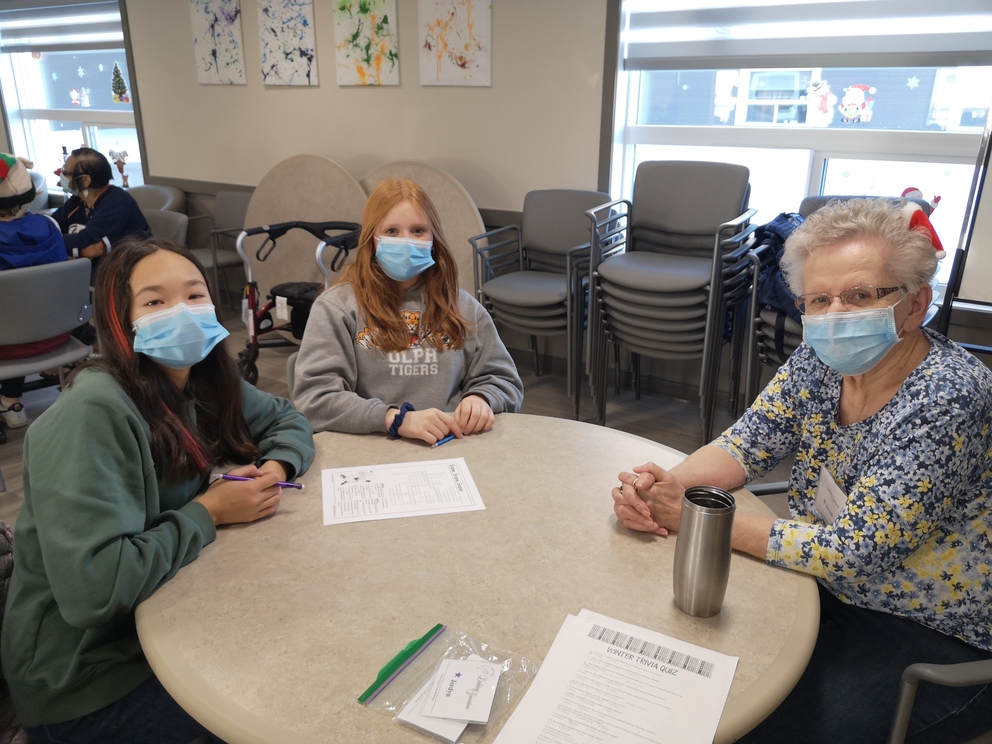 École Our Lady of Perpetual Help Catholic School (OLPH) students & Heartland Housing Clover Bar Lodge seniors worked on a “Winter Snowflakes” puzzle … and on a “Snow, Snow, Snow” crossword … and on a “Christmas Trivia” questions.