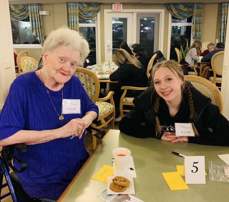 Our Linking Generations Students from St. Theresa Middle School and their “linked” seniors from Bedford Village were extremely excited about this evening visit, as it gave both participants an opportunity to introduce their” linked” student or senior to their family.