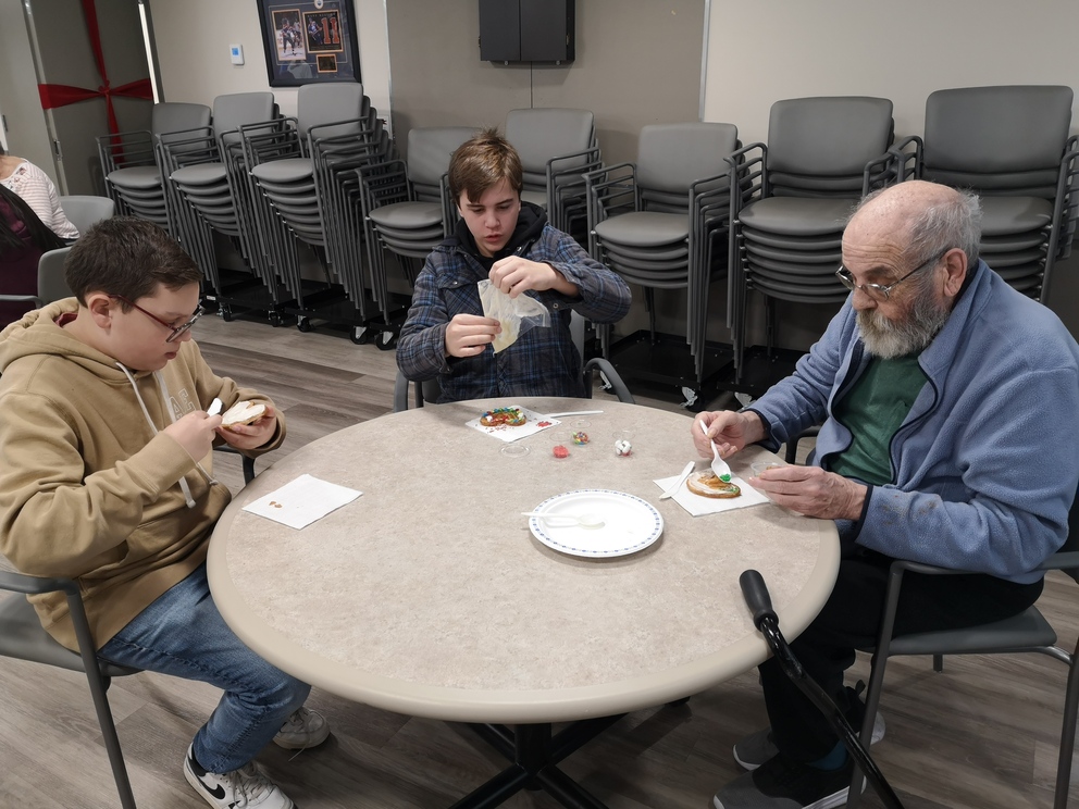 Our student from École Our Lady of Perpetual Help Catholic School (OLPH) and our linked seniors from Heartland Housing Clover Bar Lodge not only enjoyed decorating cookies but also sharing their holiday traditions and memories.