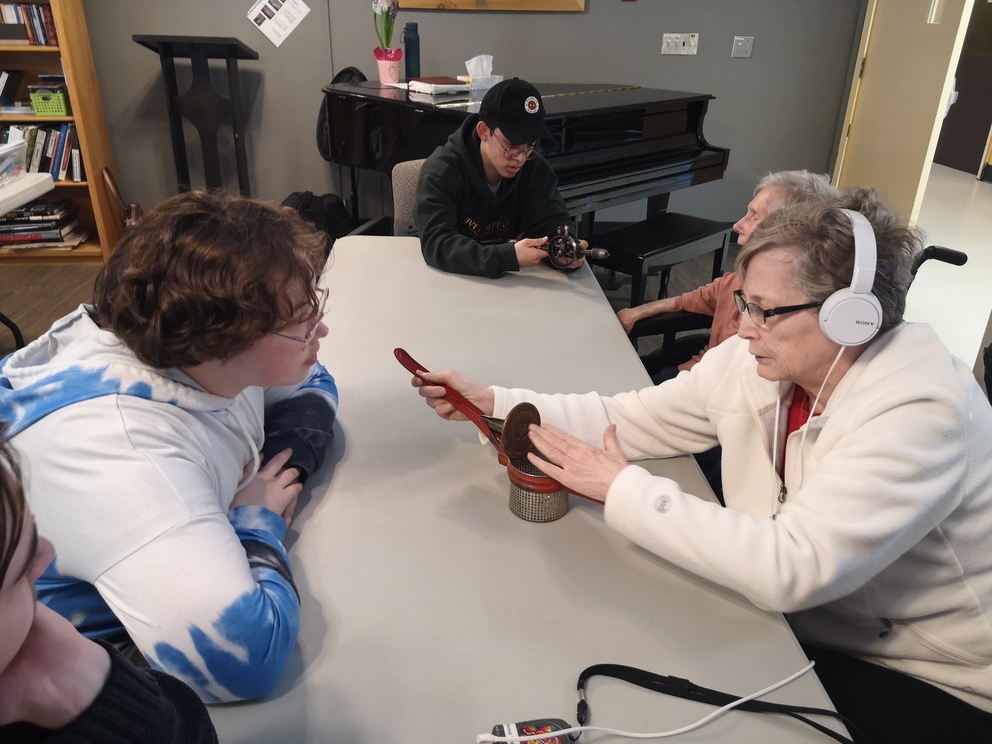 Linking Generations seniors and students shared and discussed various “Back to our Heritage ” items supplied by Strathcona Museum. Many students had never seen some of the items, and our seniors had stories to tell.