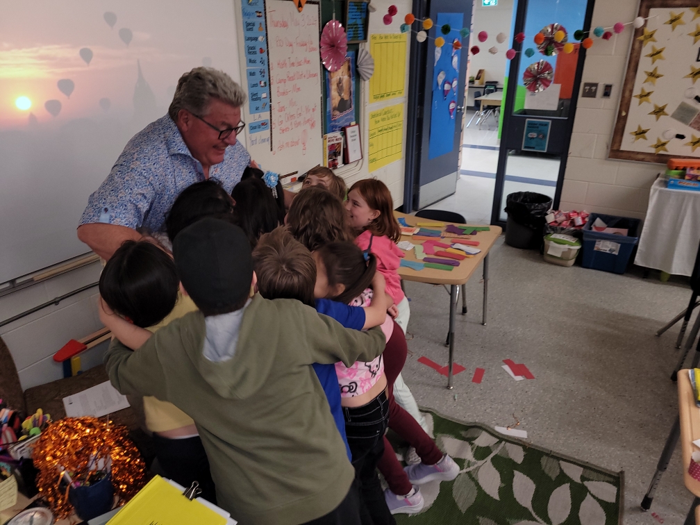 The students gave Grampa/Opa Bernie a huge group hug to thank him.