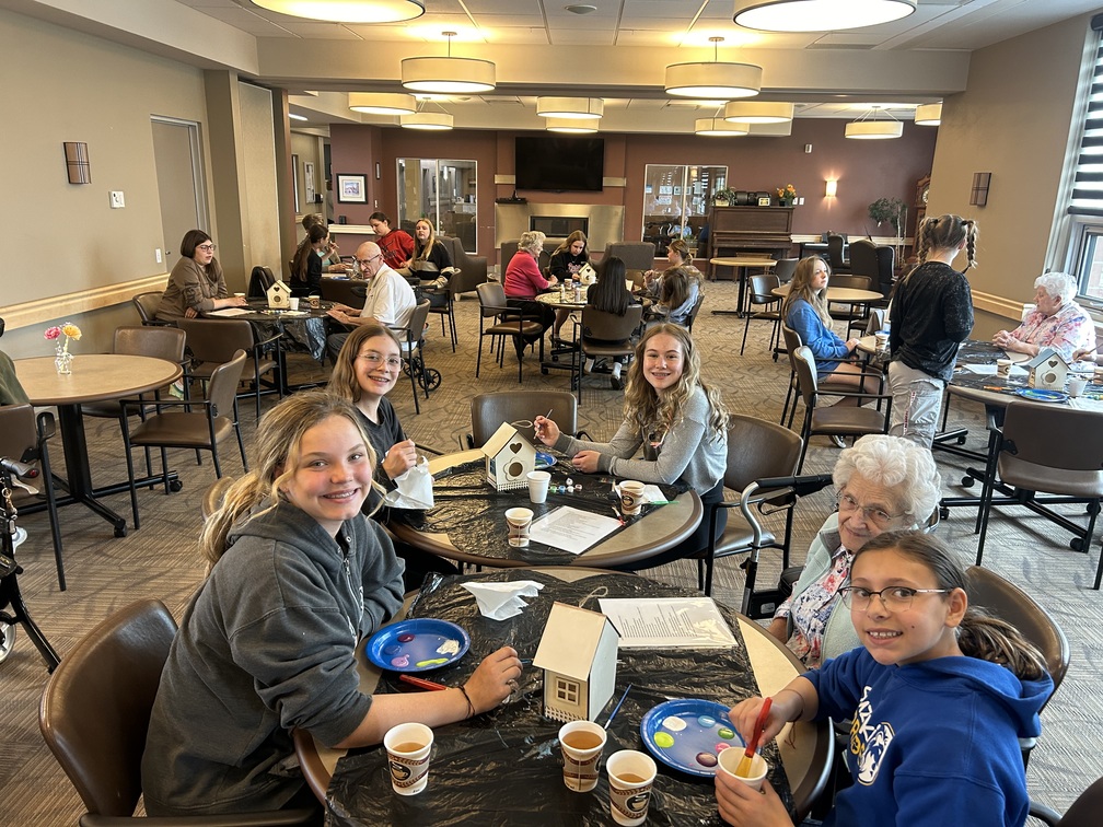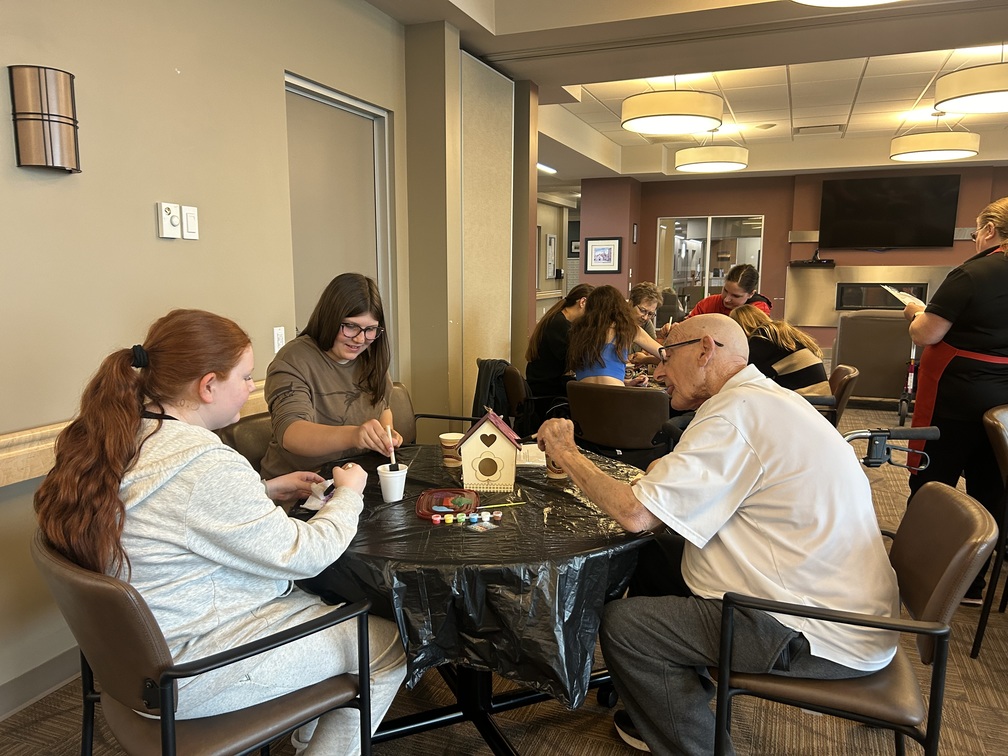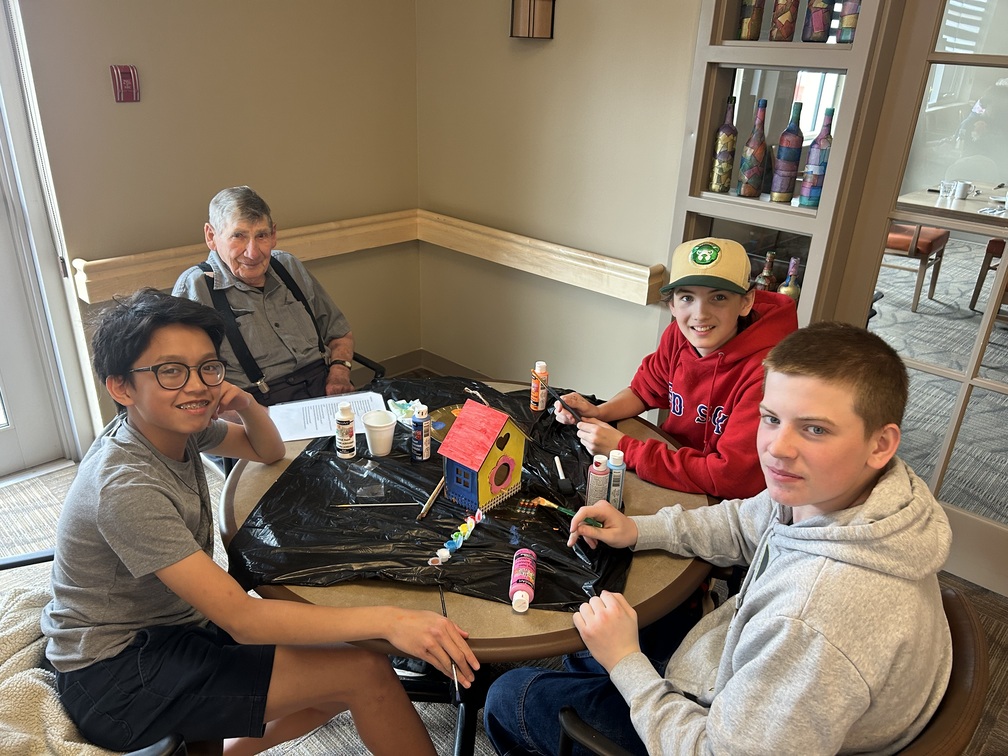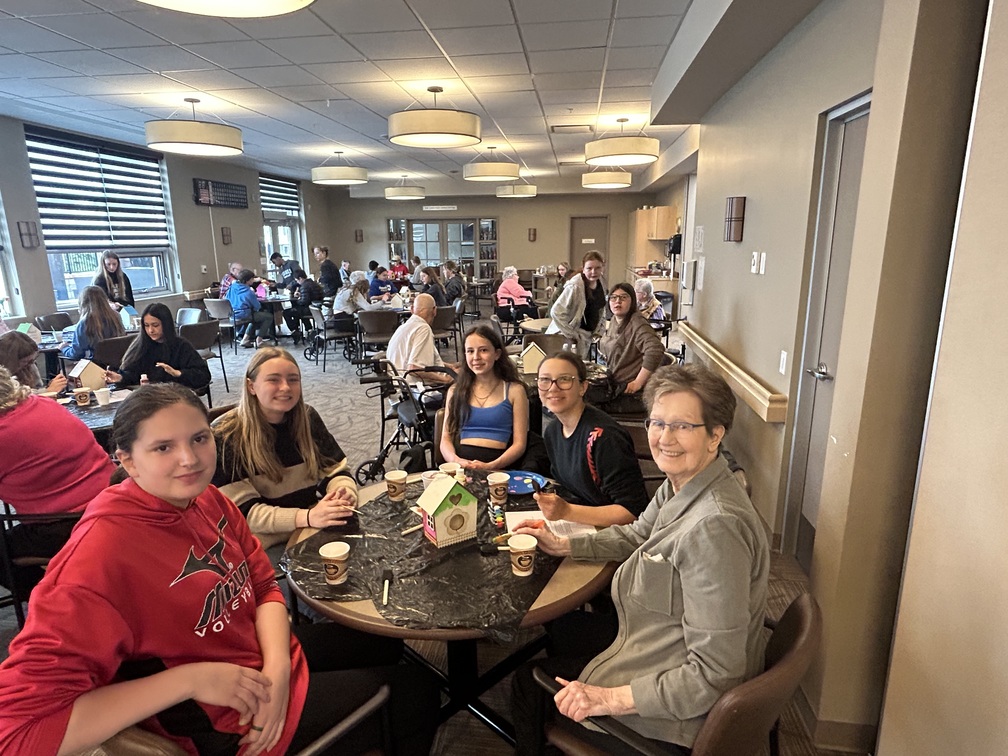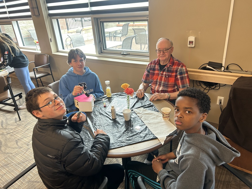 Our seniors from Dr. Turner Lodge and our students from St. John Paul II Junior High School had a great afternoon as they prepared for the spring birds to arrive and have new houses to fly into.