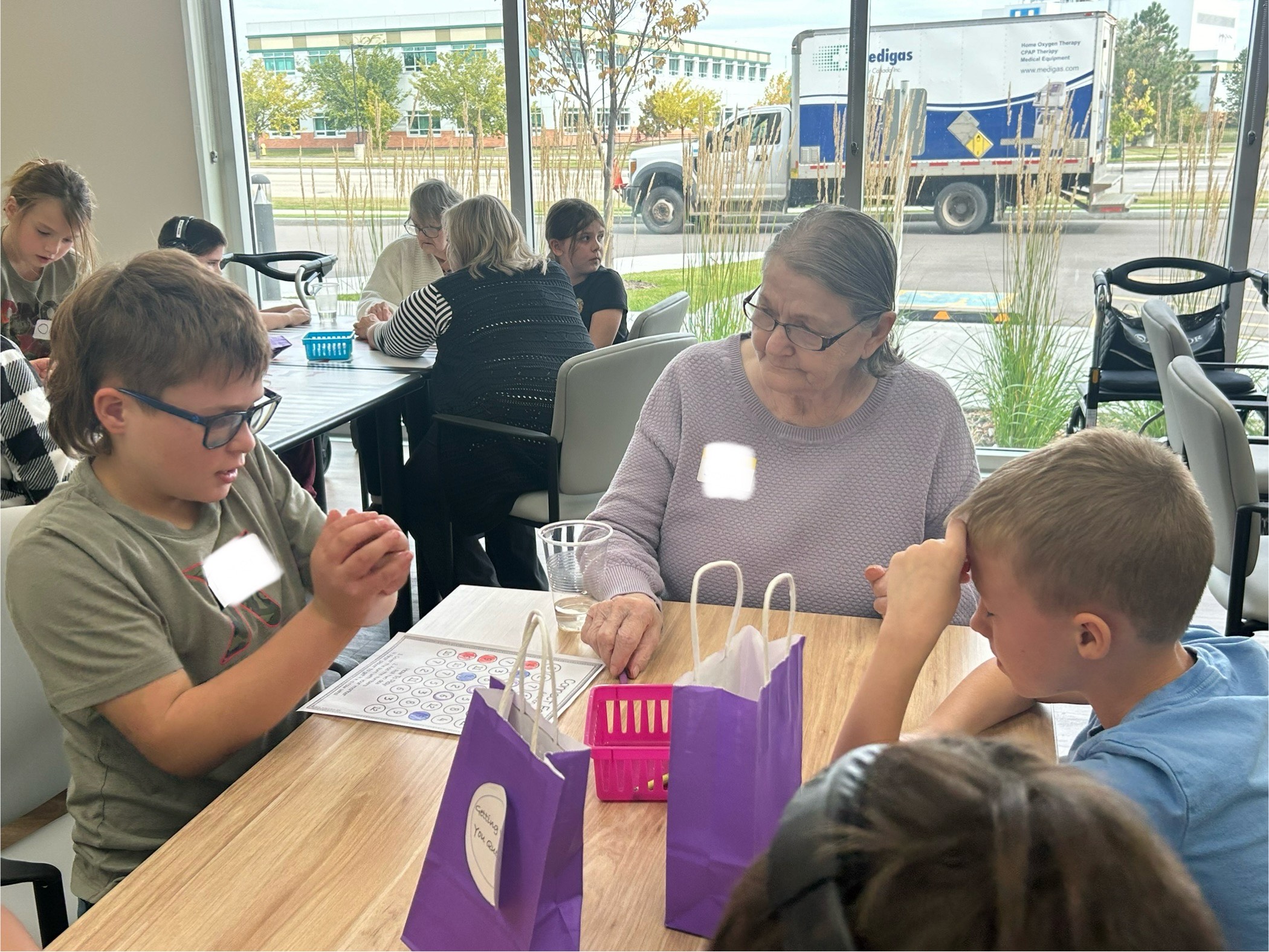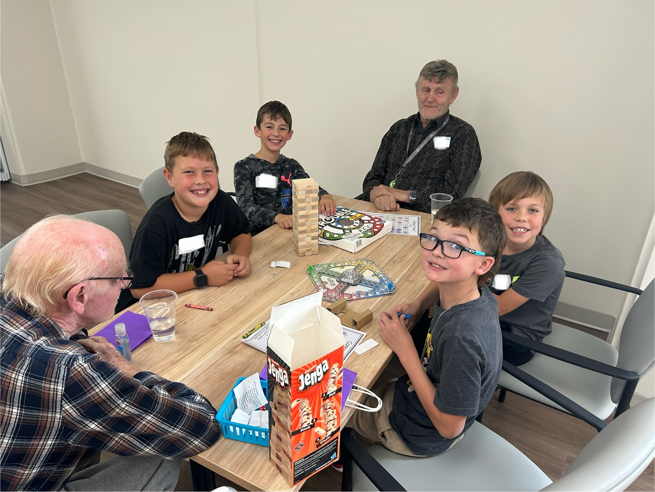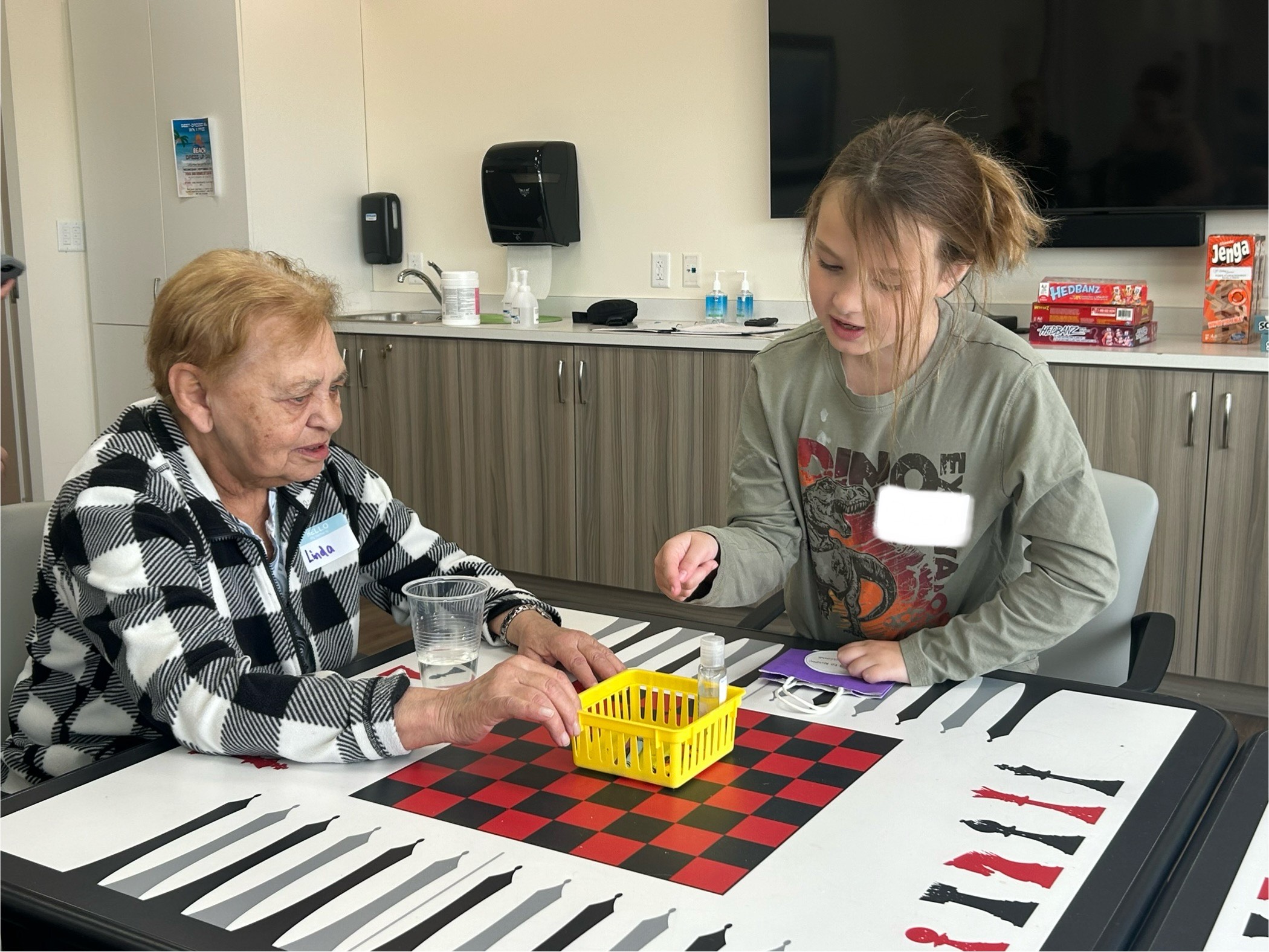 Elementary students from St. John XX11 Catholic School will visit bi-weekly with reading books, coloring, or simply playing a game of snakes and ladders with our seniors.