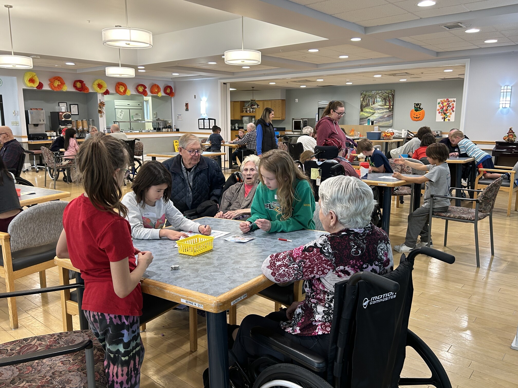 Seniors helped our young students with a Math Dice Game “Make That Number” — whereas you add or subtract the number on the dice and colour the squares. The player with the most colours after squares all filled in wins.