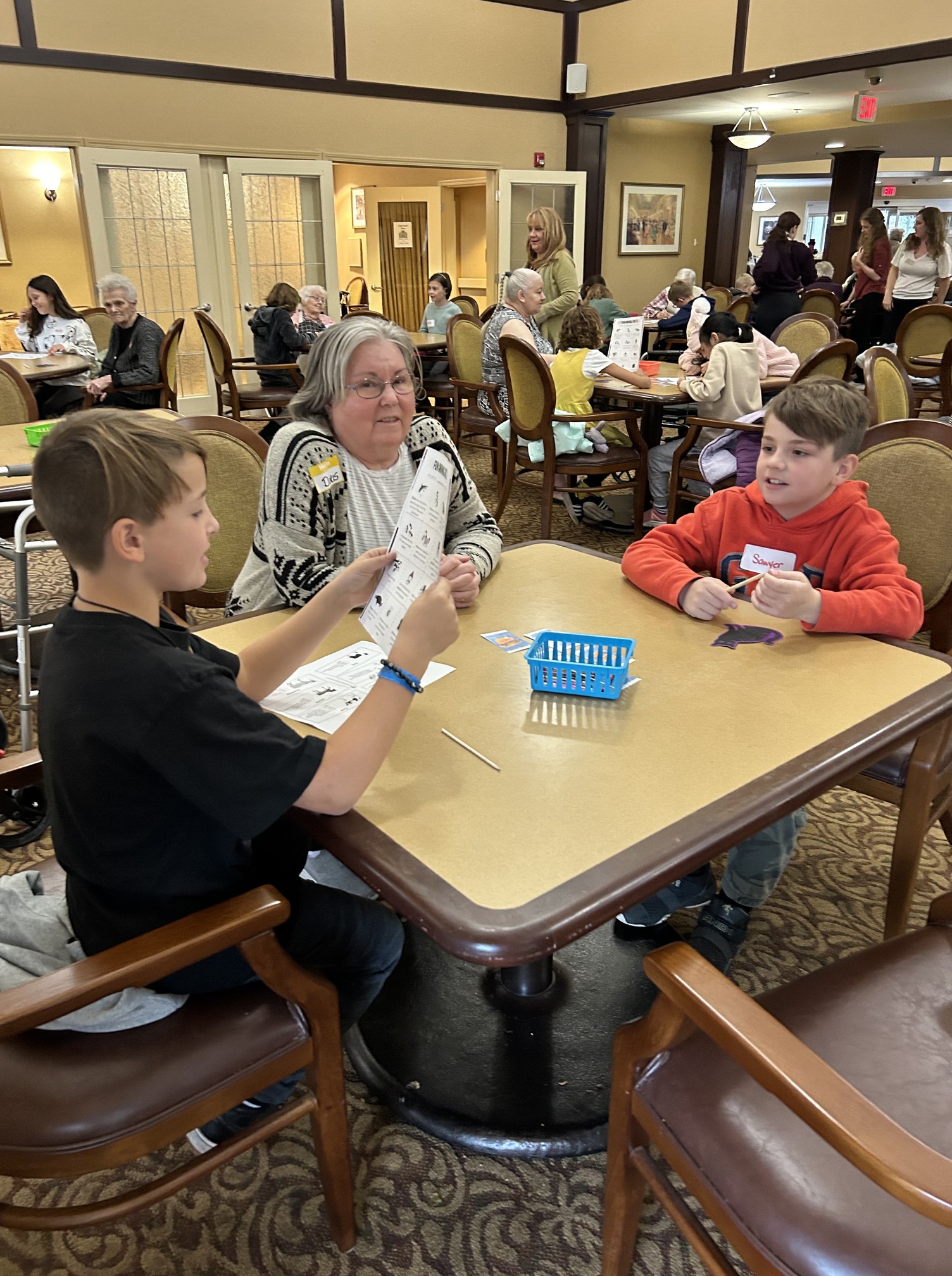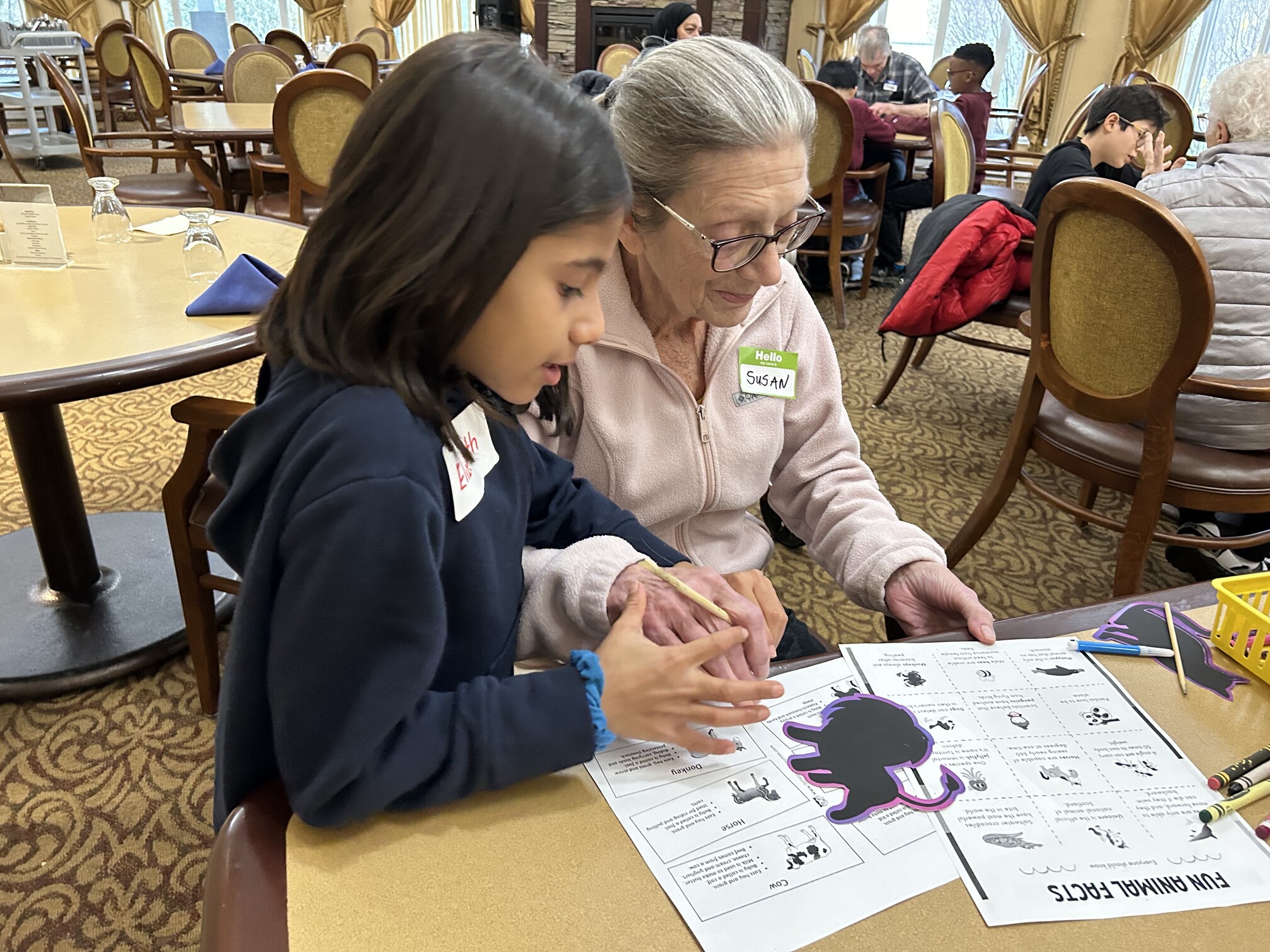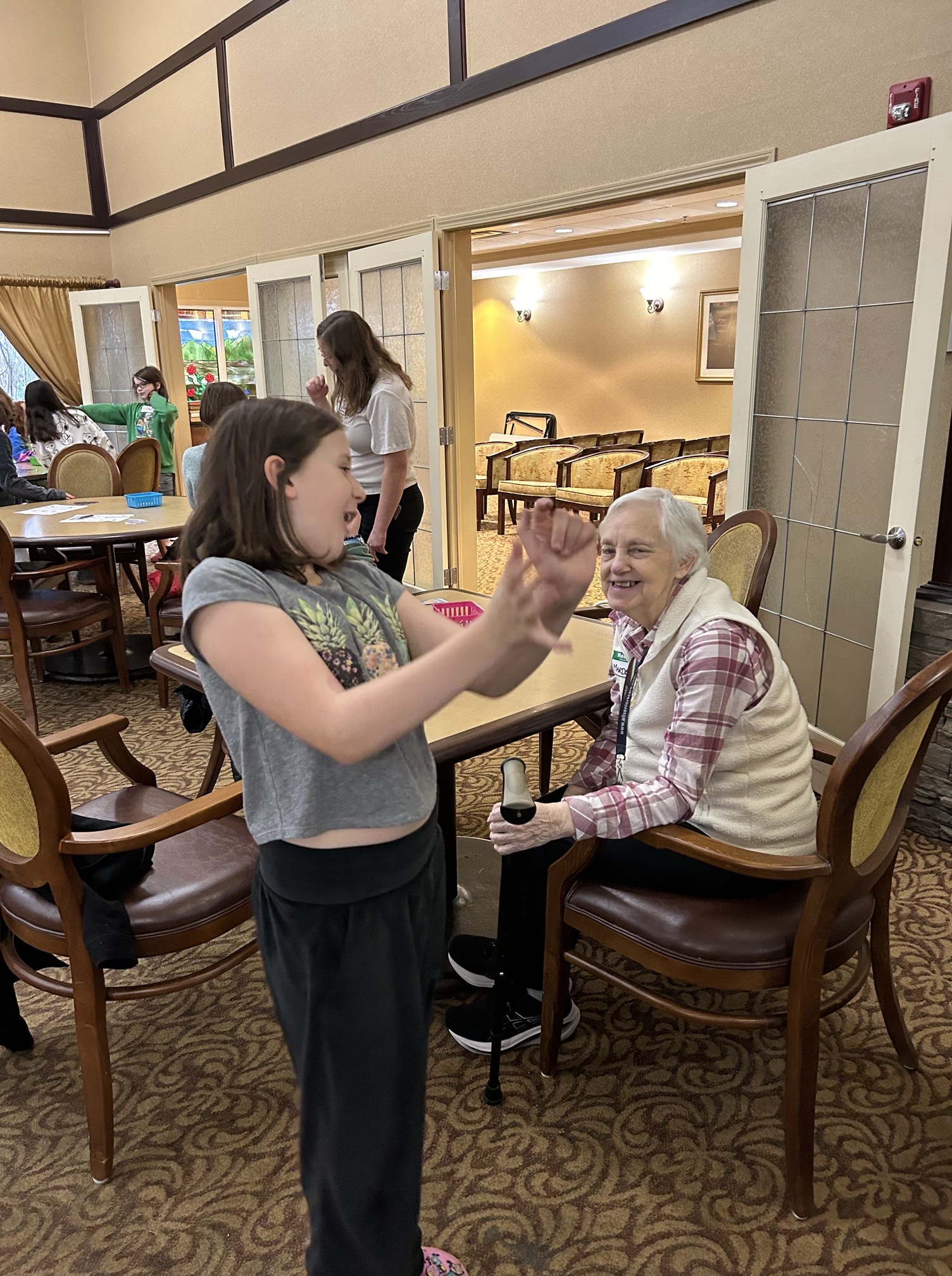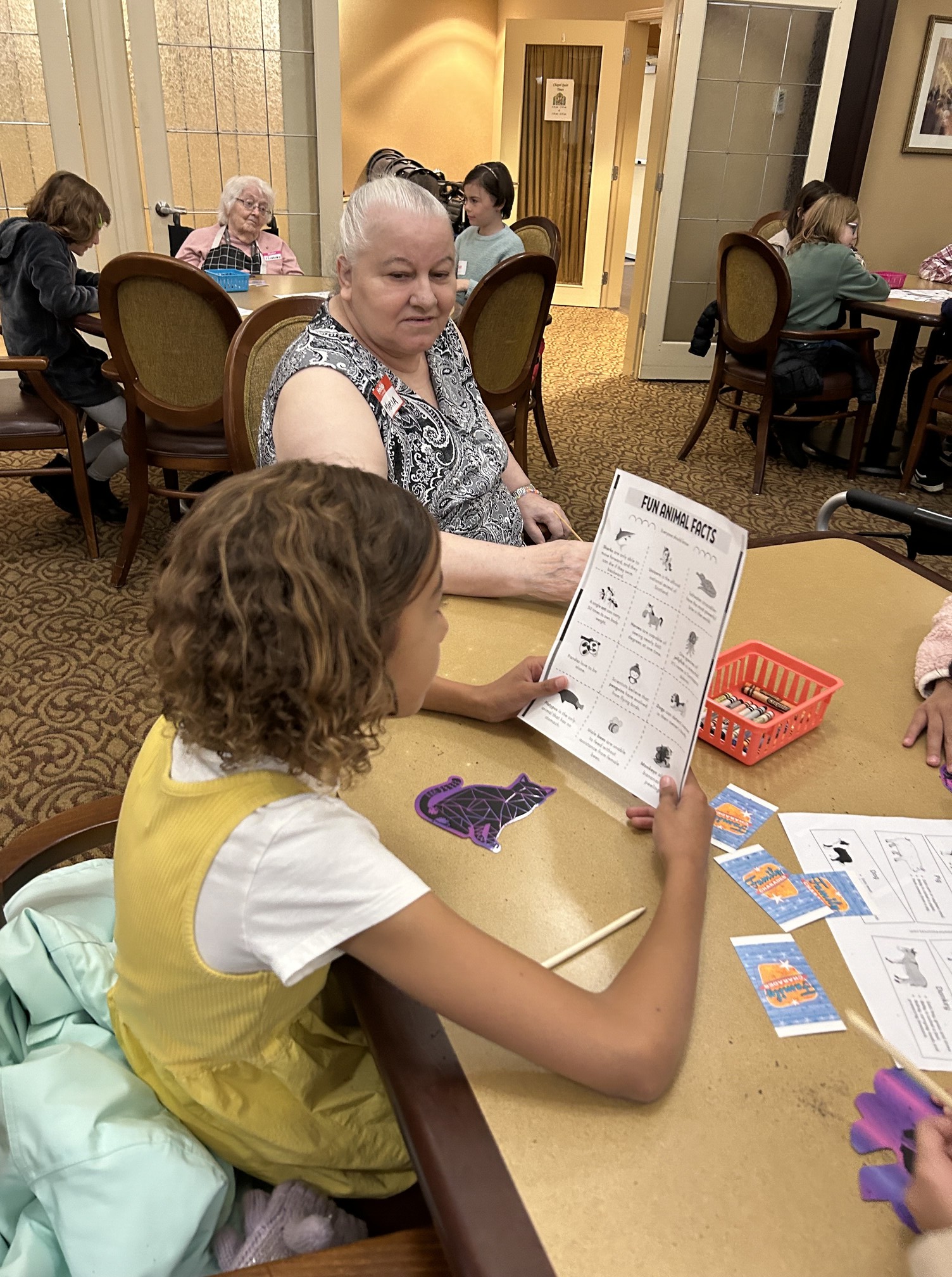 While visiting today, students discussed and shared with our seniors the various types of animals that there are, and asked if the seniors had pets when younger. Many shared their memories of younger years with a pet or farm animals.
