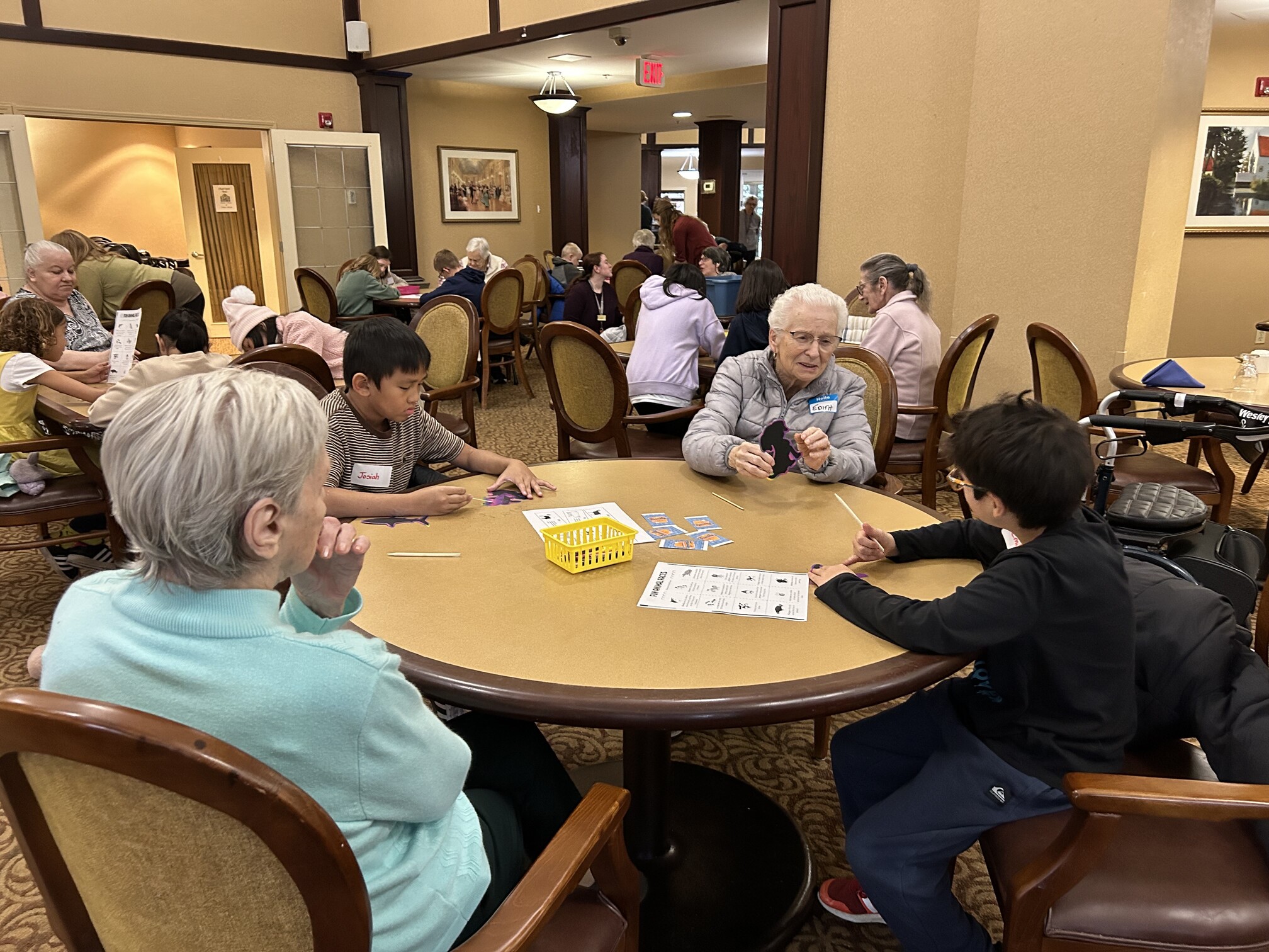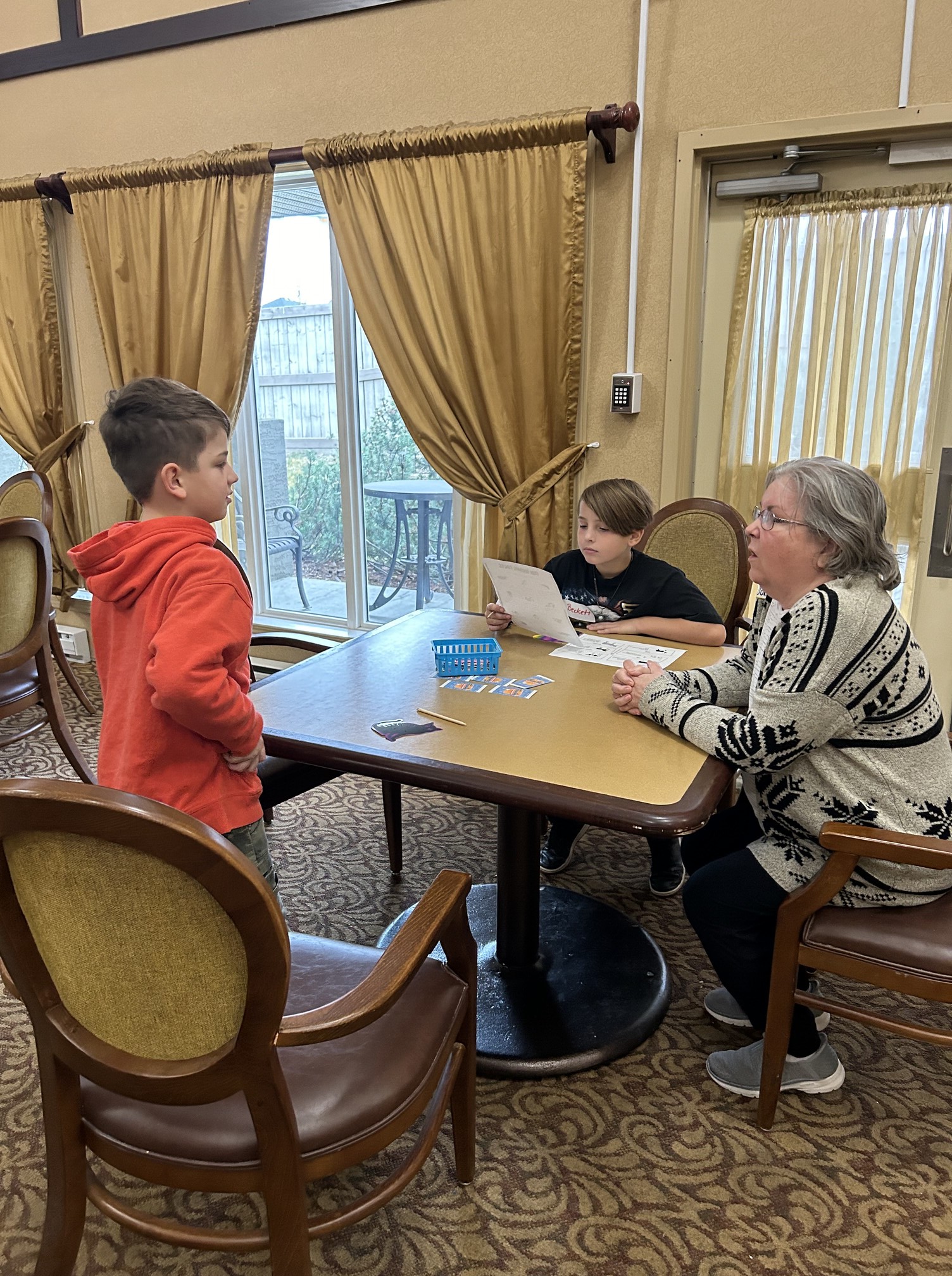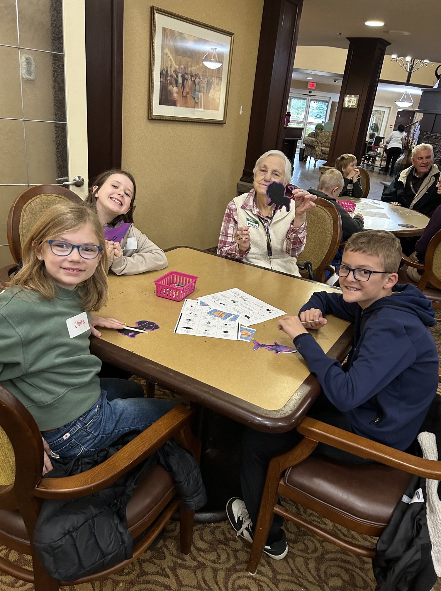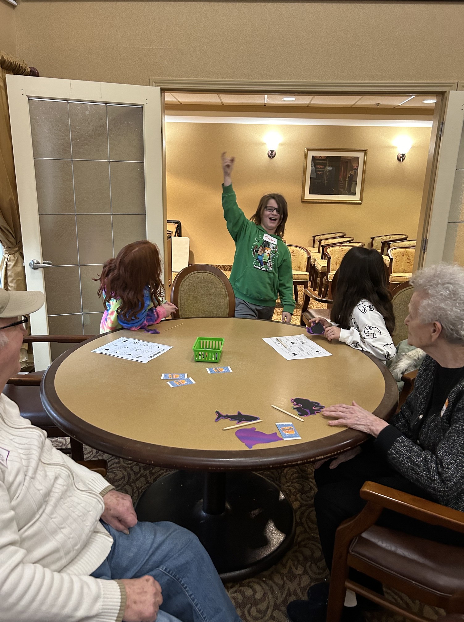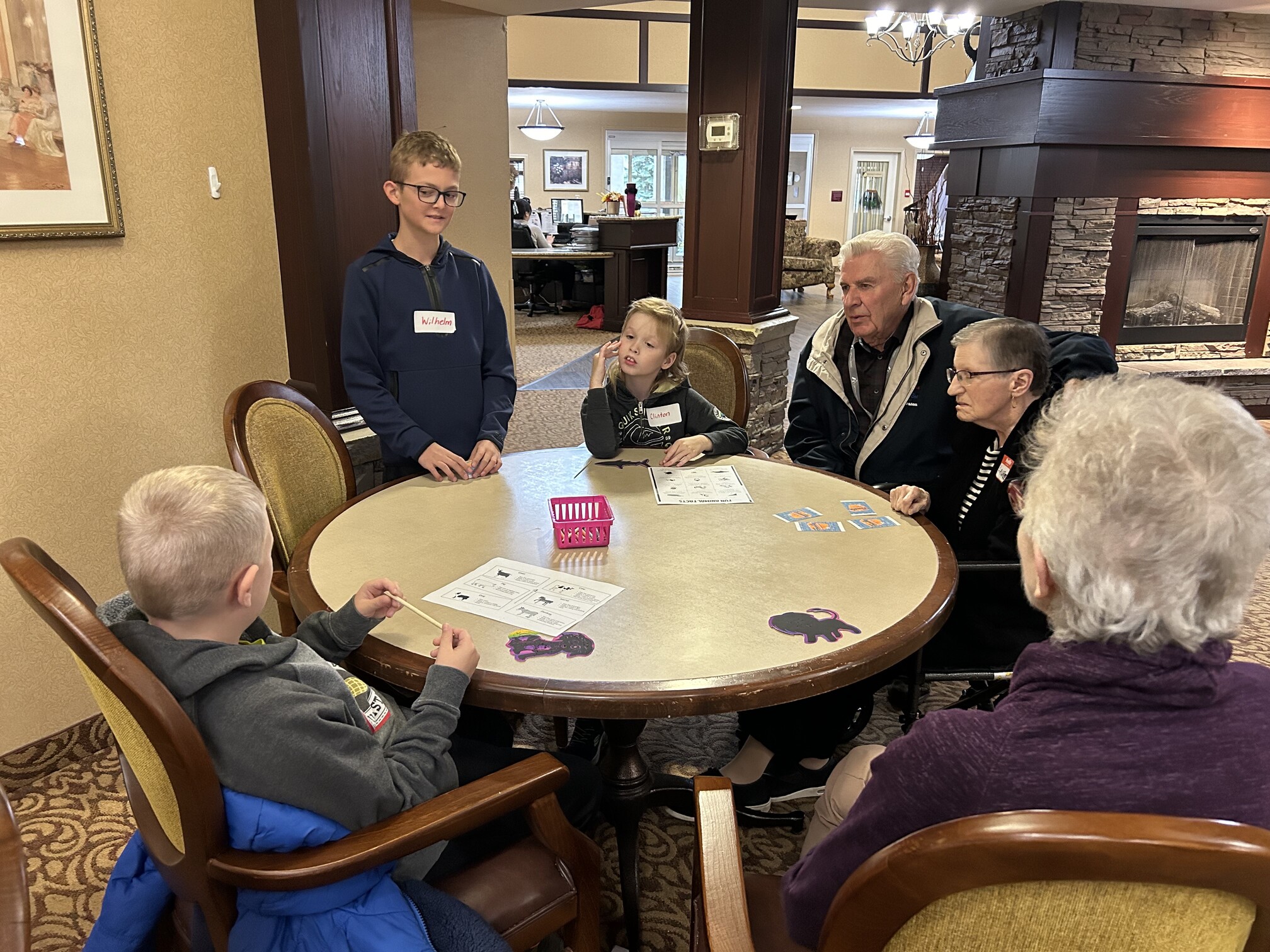 While visiting today, students discussed and shared with our seniors the various types of animals that there are, and asked if the seniors had pets when younger. Many shared their memories of younger years with a pet or farm animals.
