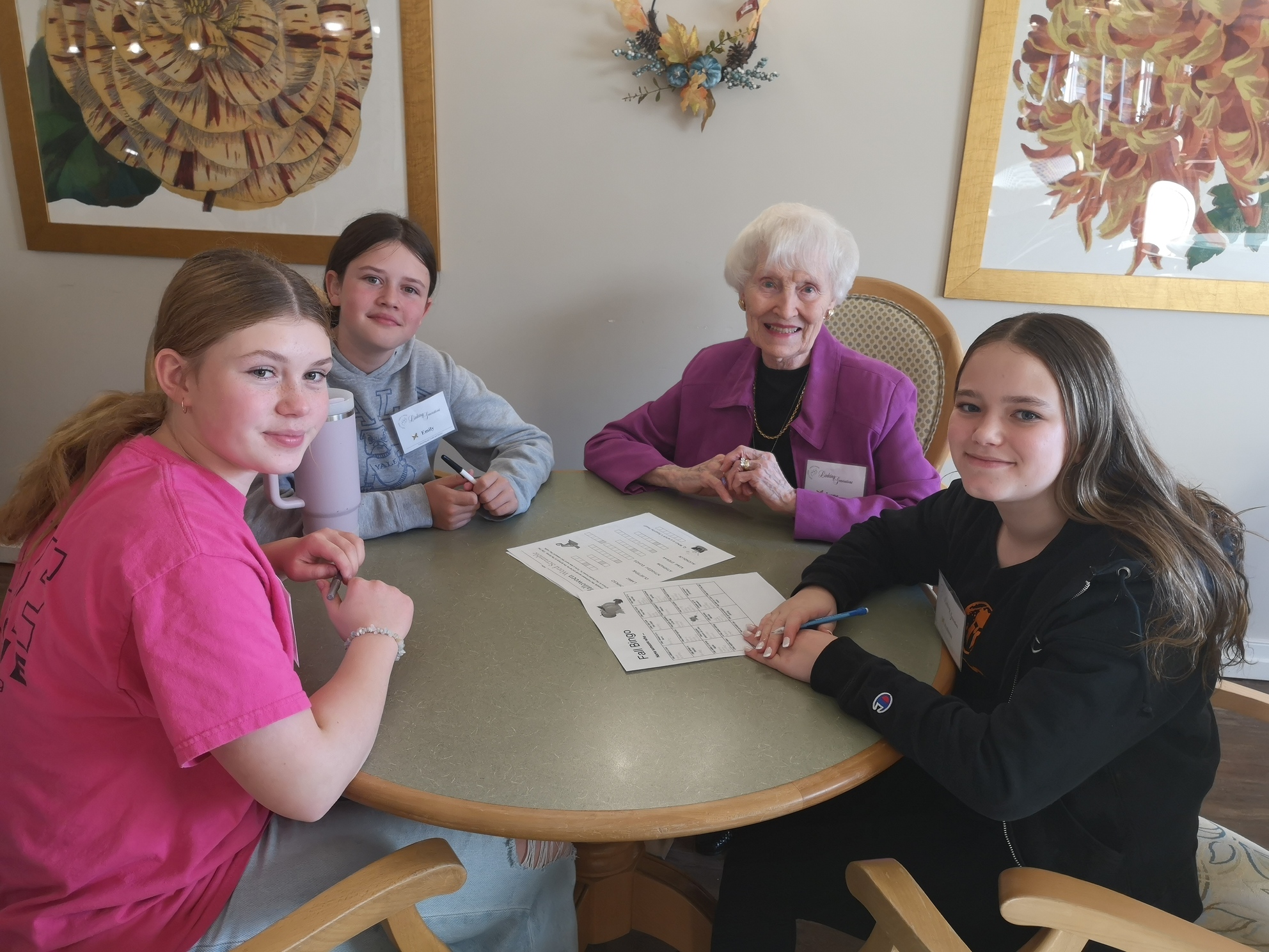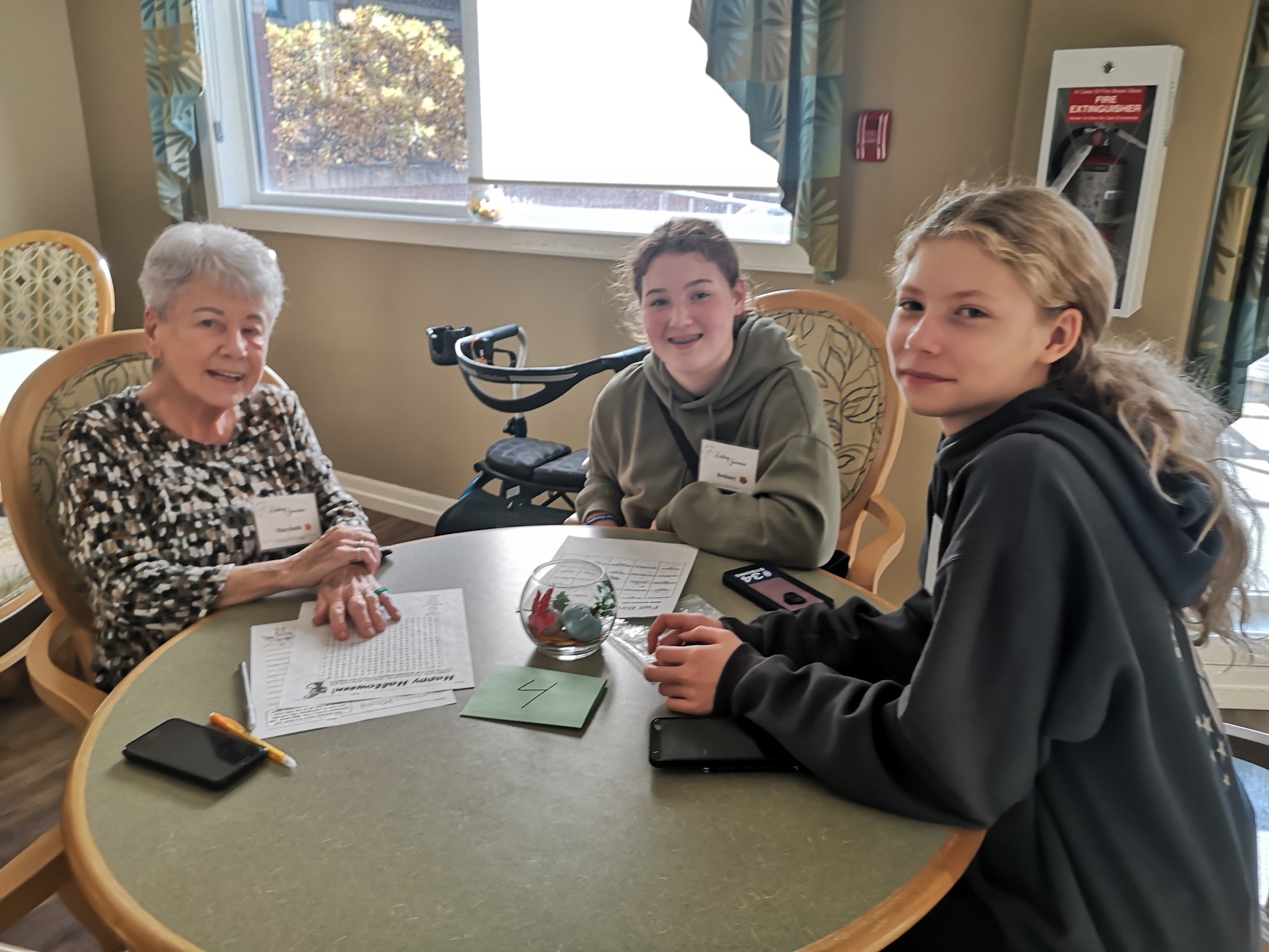 Our students from St. Theresa Catholic School and their linked seniors from Christenson Developments Bedford Village, share trivia questions and facts while sharing laughter and conversations.