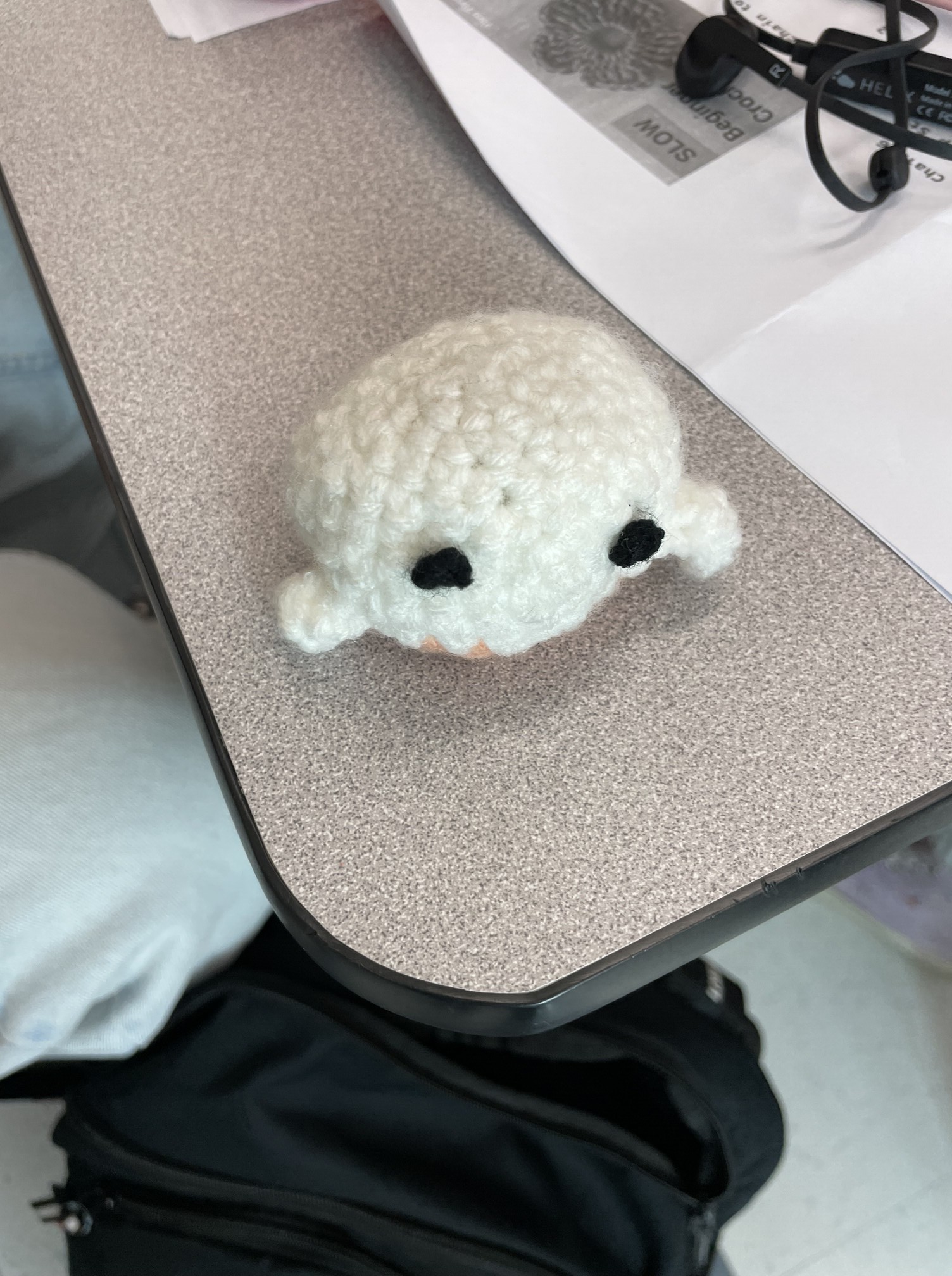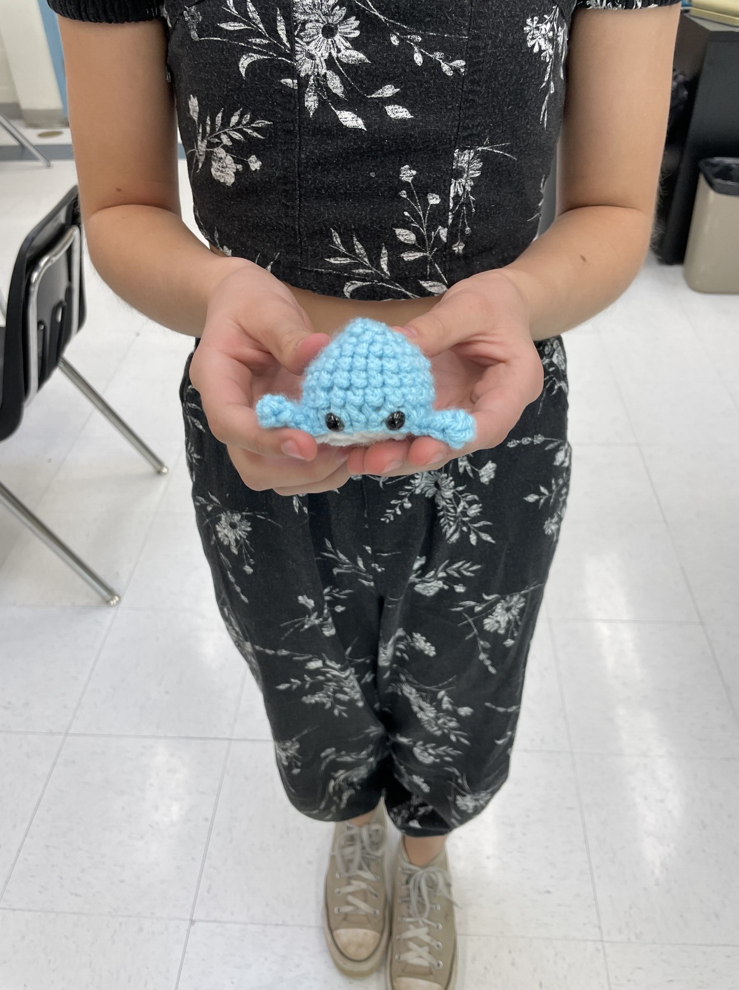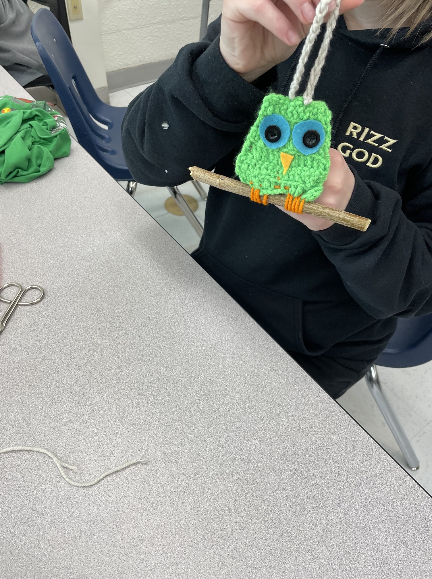 One of Linking Generations Grandparents is teaching students at École Our Lady of Perpetual Help Catholic School (OLPH) how to knit.
