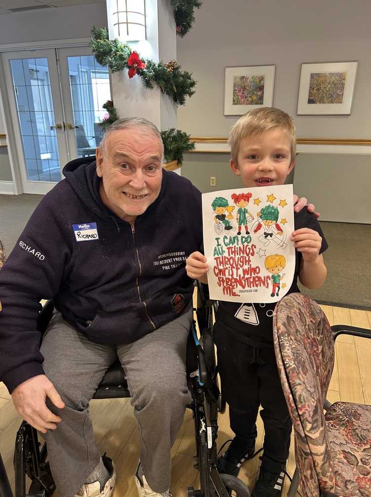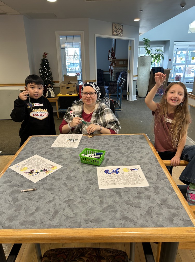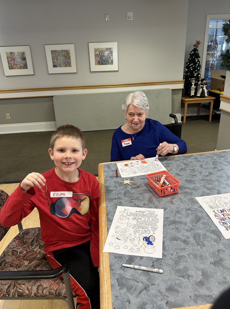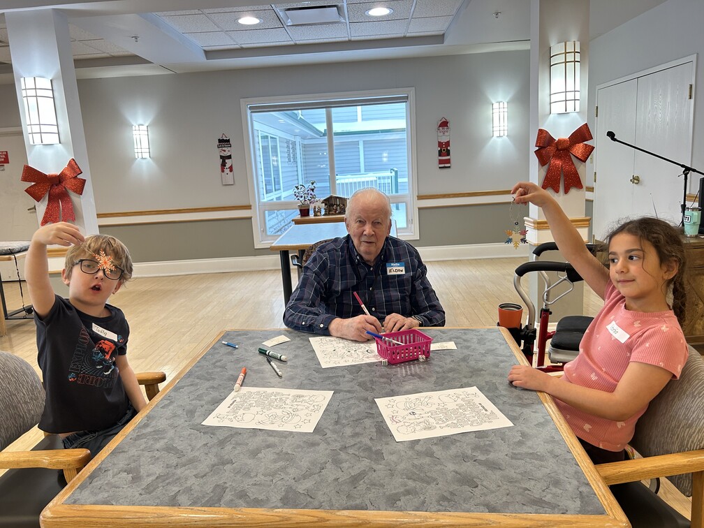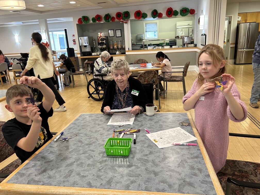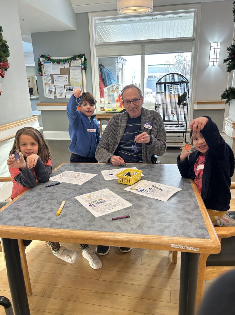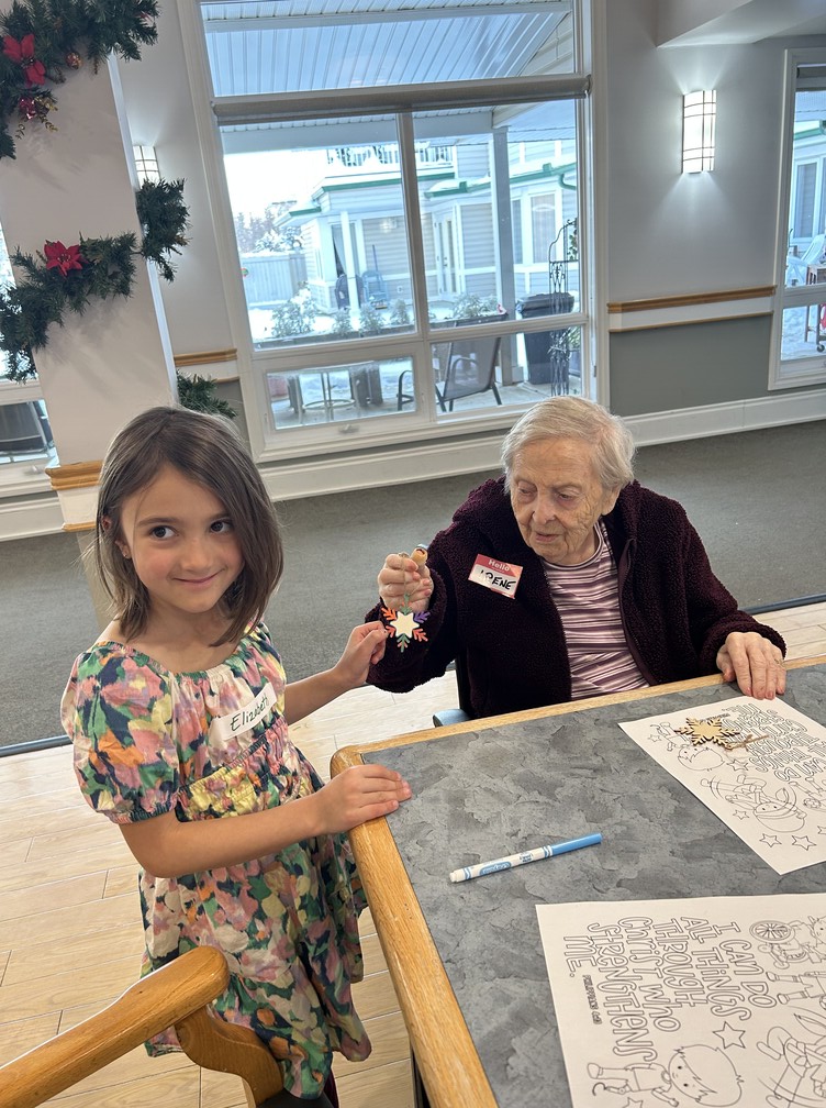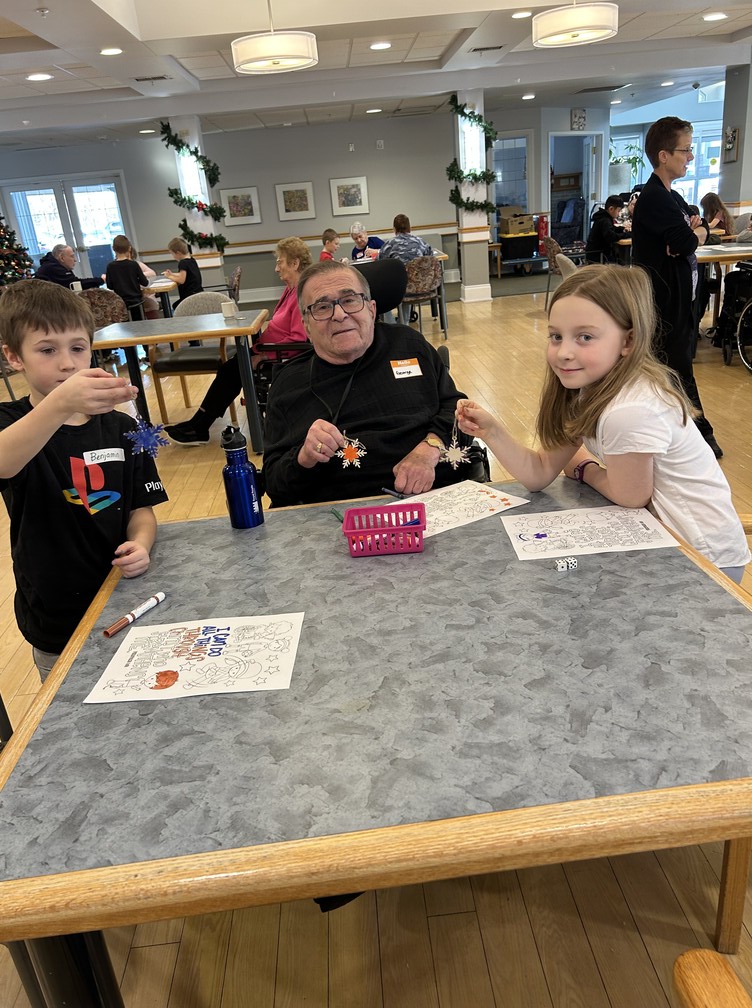 What a great visit this afternoon at Capital Care Strathcona! Our Share and Care grade two classroom of 30 students from EPK Elementary School coloured wooden Christmas Ornaments with their linked seniors and then left the ornaments with the seniors and lodge so as to decorate around the facility.