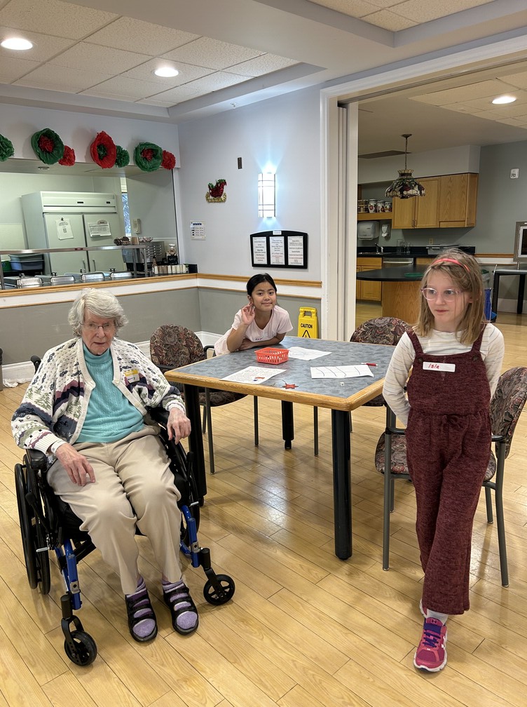 After the craft was completed, seniors and students gathered together to sing some Christmas carols .