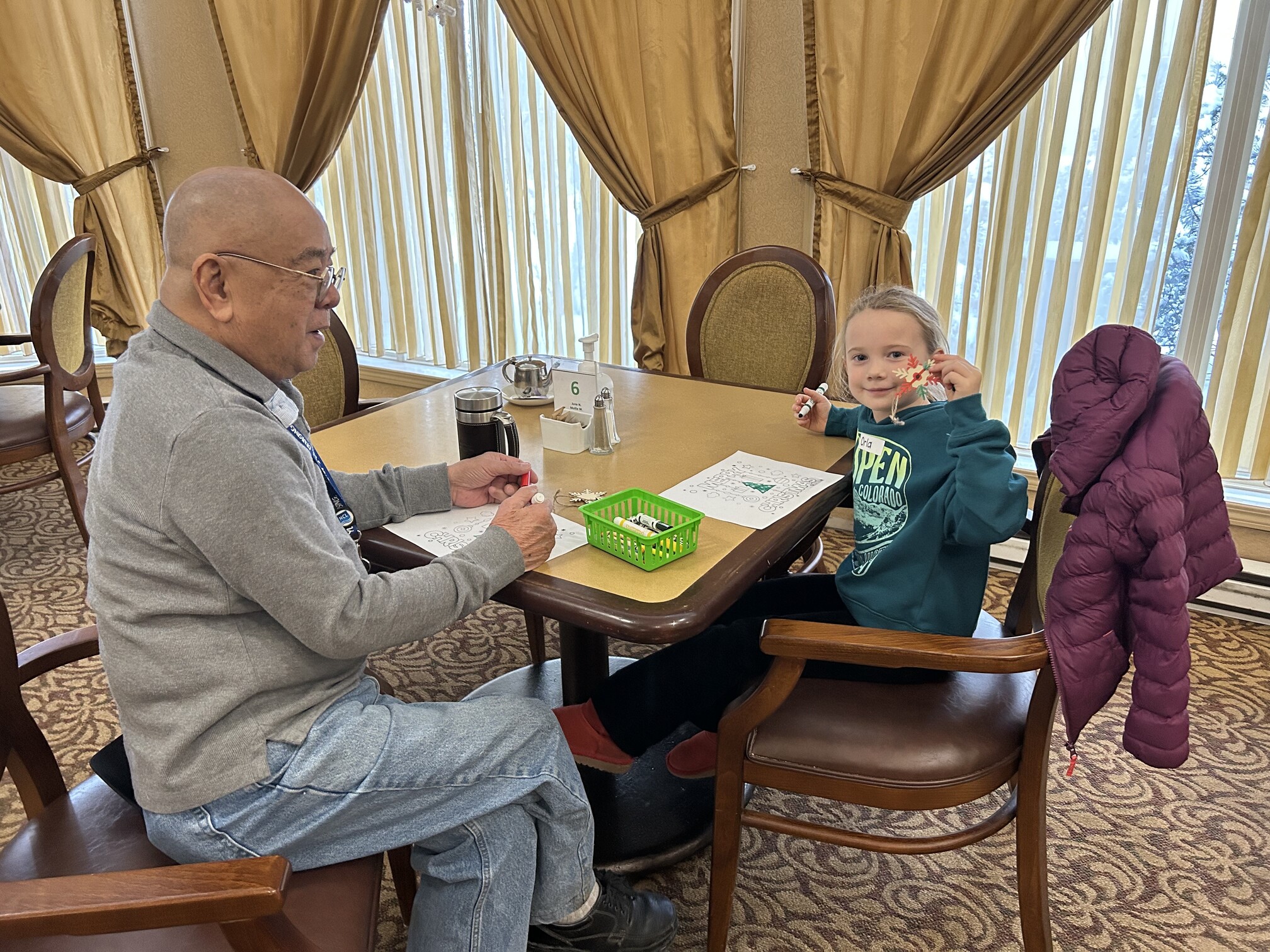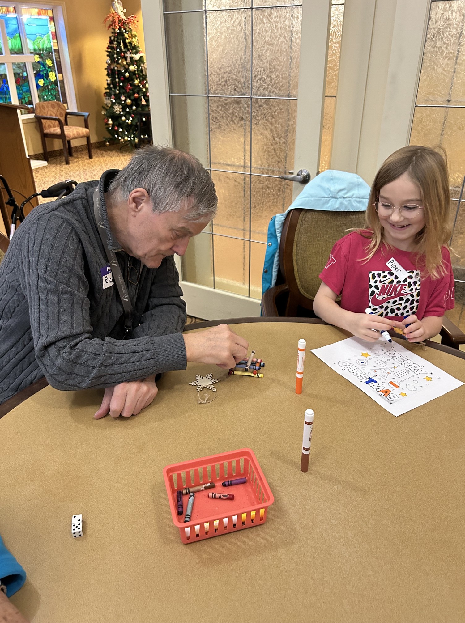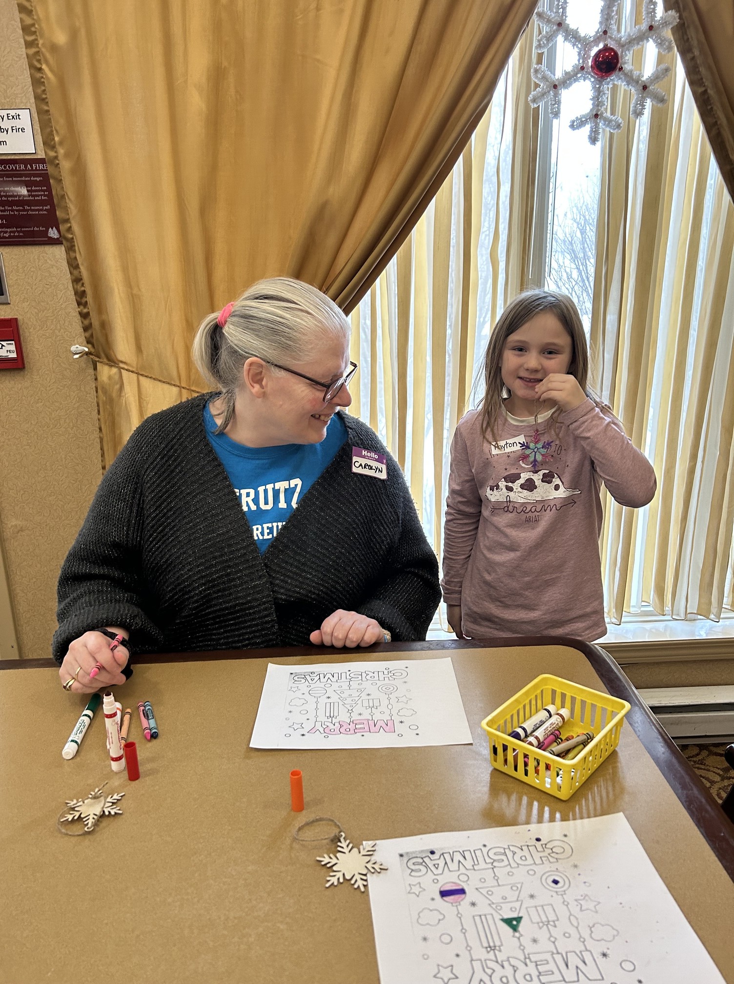 The teams colored Merry Christmas pictures and played a snowman dice game.