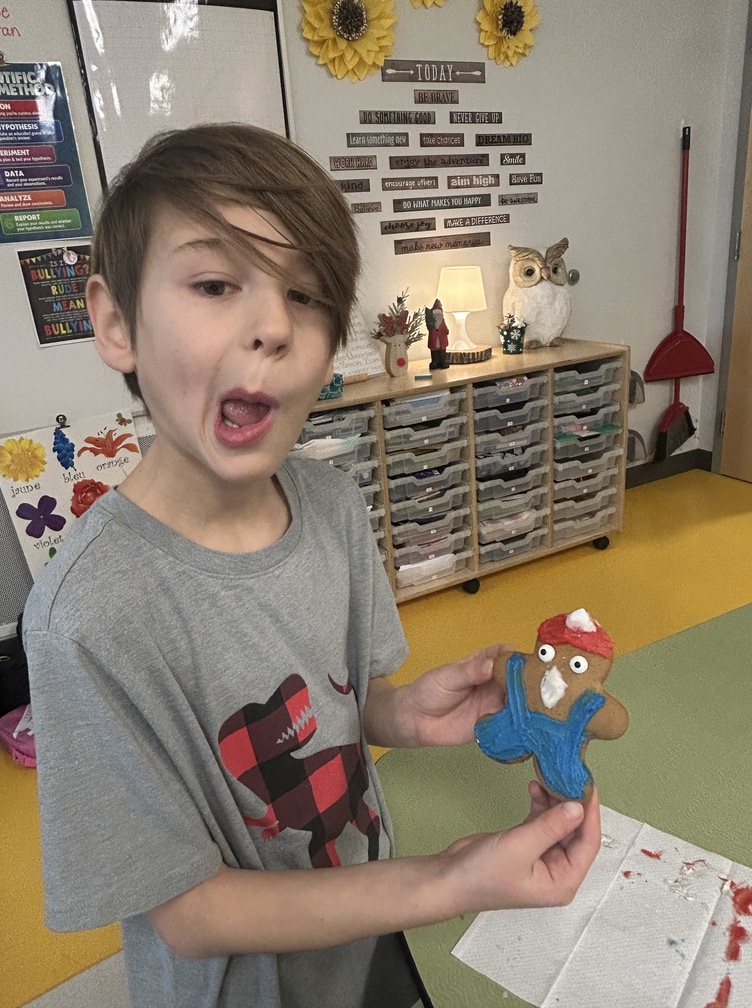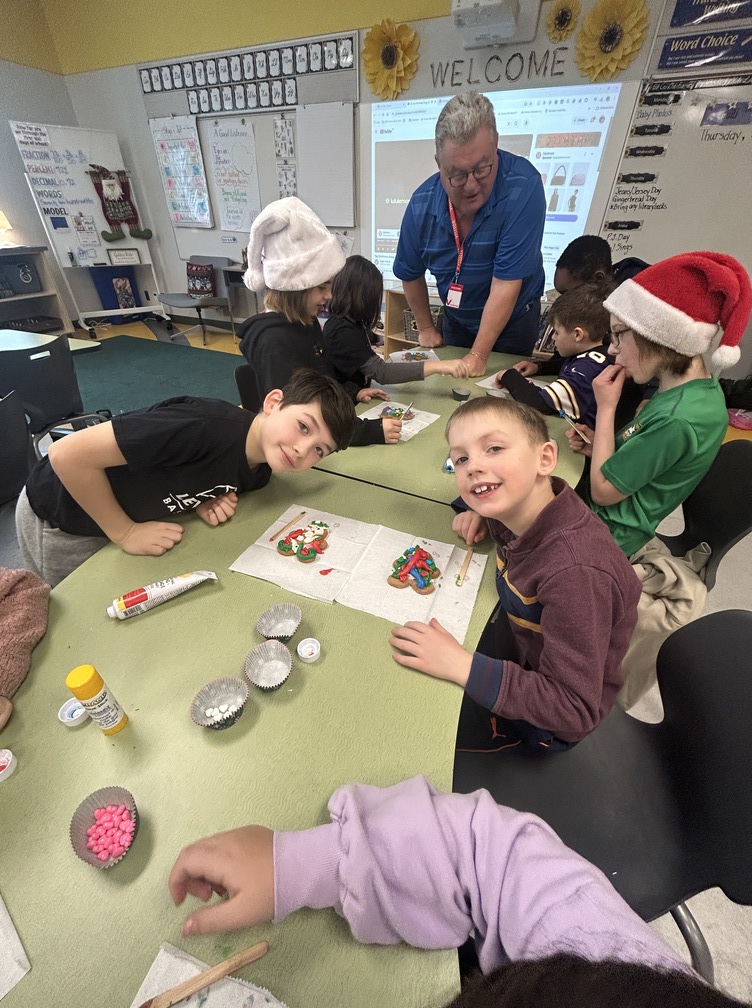 To bring in the Christmas break Grandpa Bernie had the students at Davidson Creek Elementary School decorate gingerbread men.