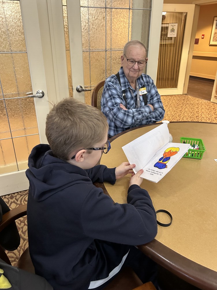 We coloured and “Our Father” Booklet and then the students read them to the seniors.