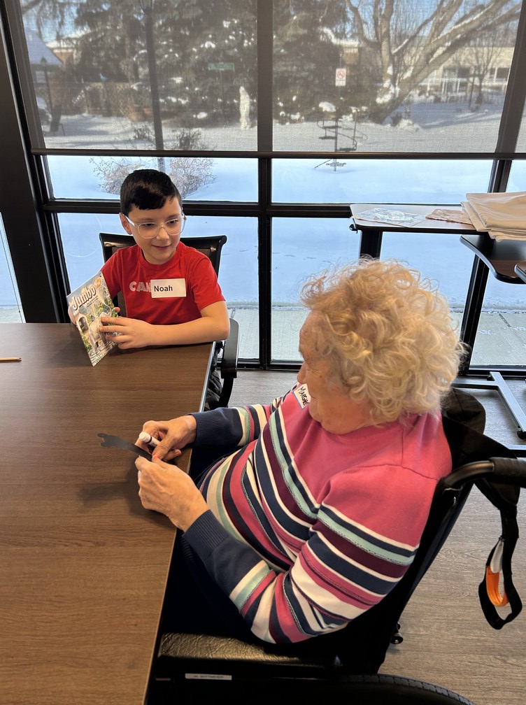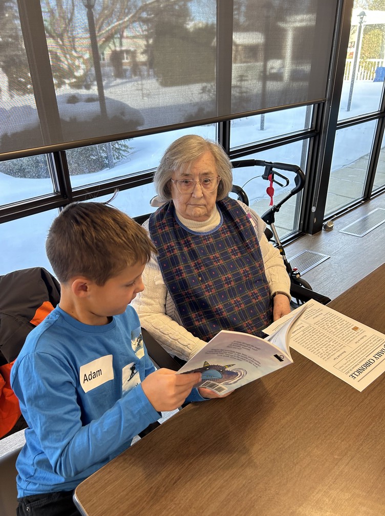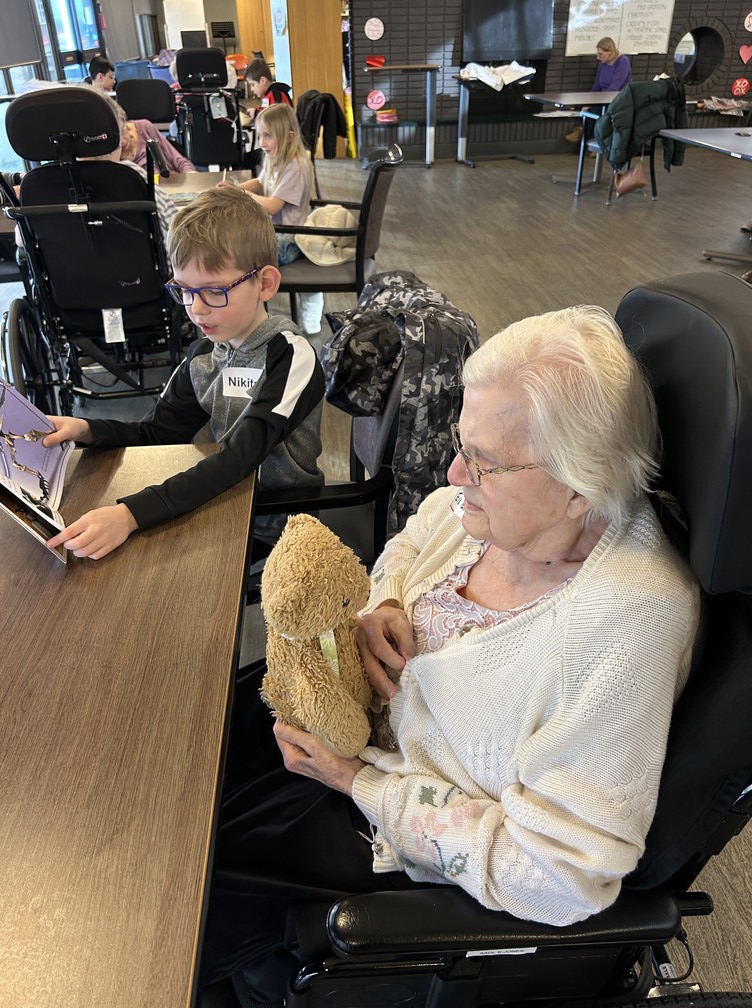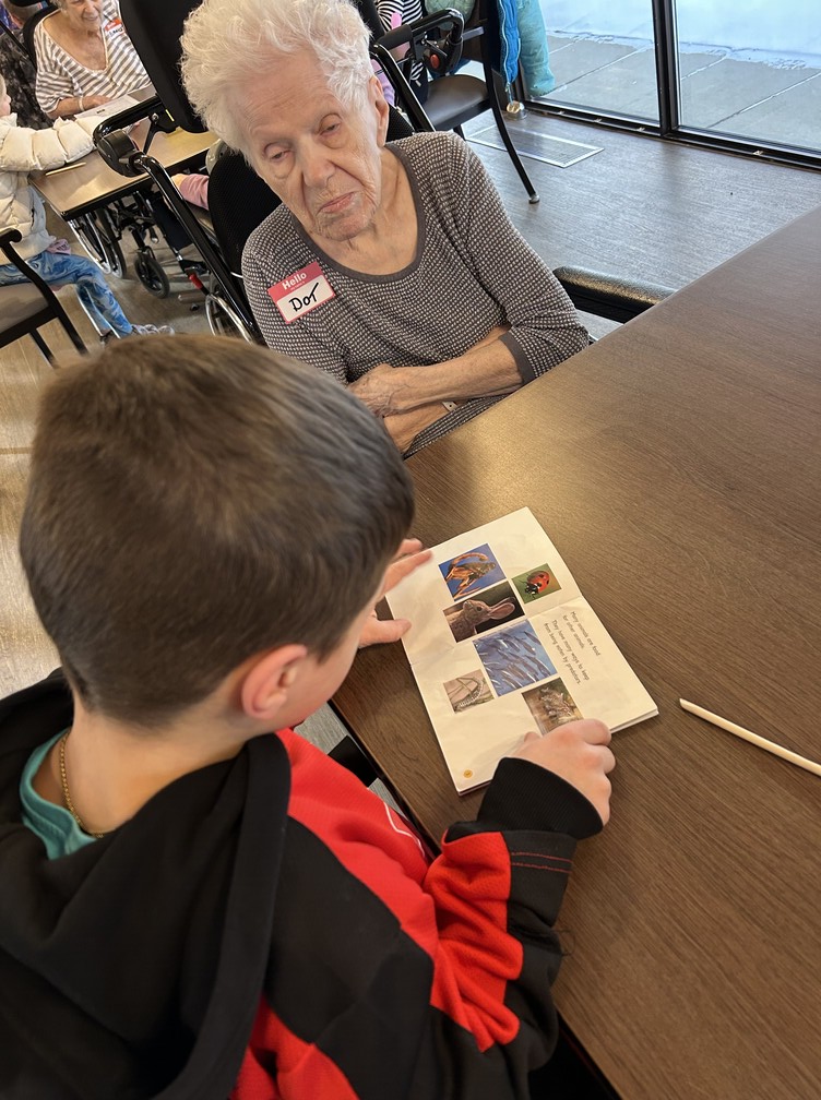 Brightening our Sherwood Care Seniors days ! Our Share and Care students spent the morning reading to our seniors and made scratch bookmarks.
