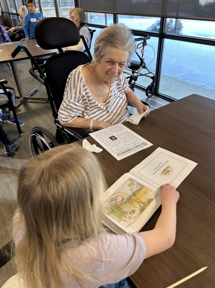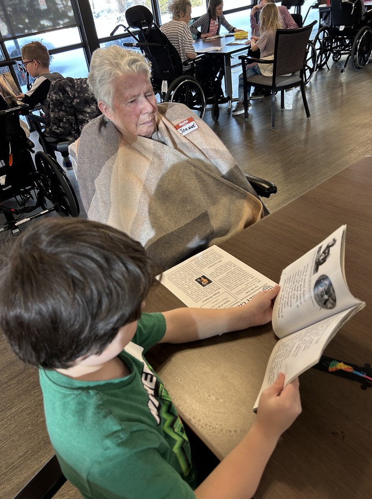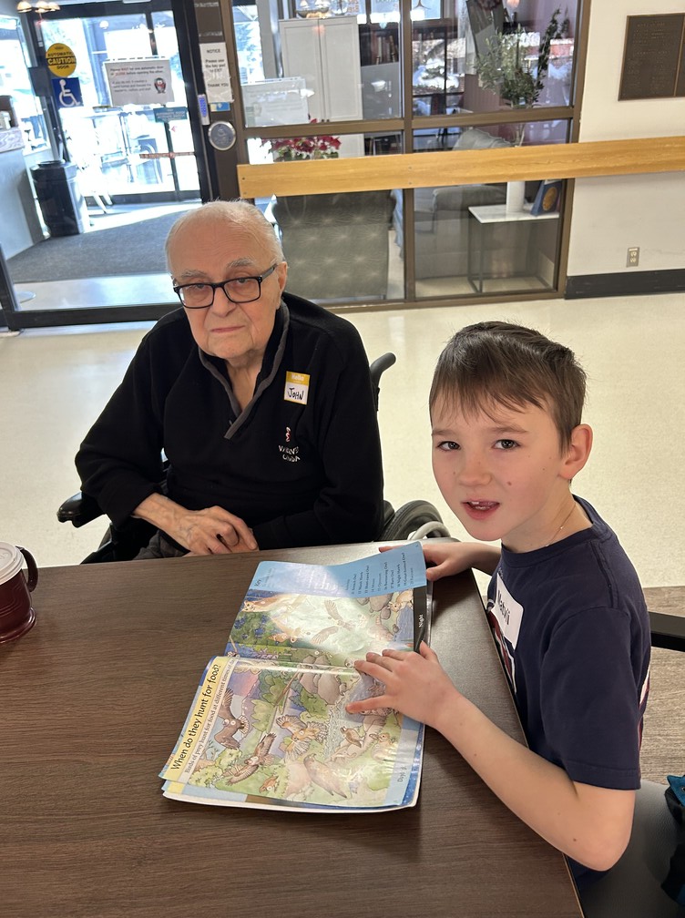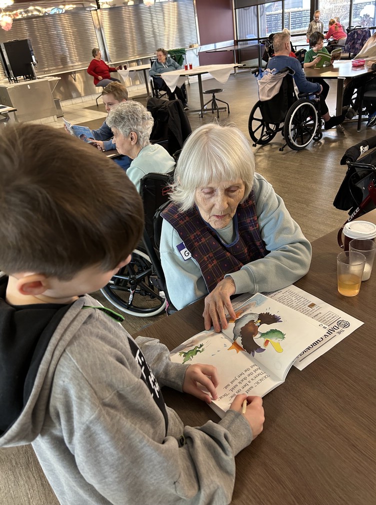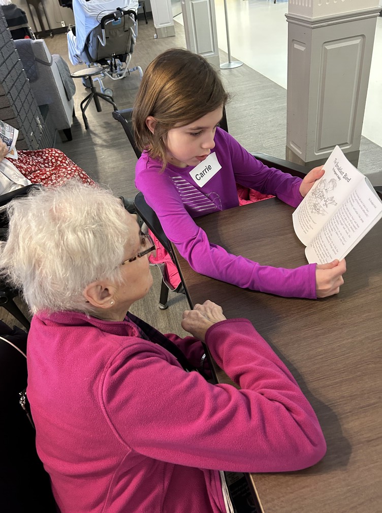 Brightening our Sherwood Care Seniors days ! Our Share and Care students spent the morning reading to our seniors and made scratch bookmarks.