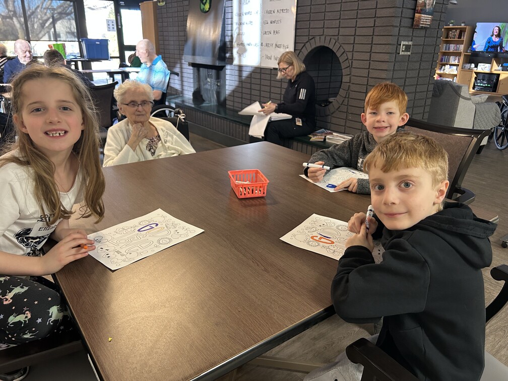 Our special “Littles” visited with Sherwood Care seniors this morning, coloring spring themed pictures which the seniors got to keep !