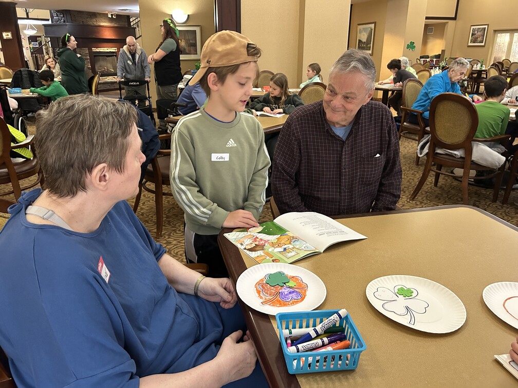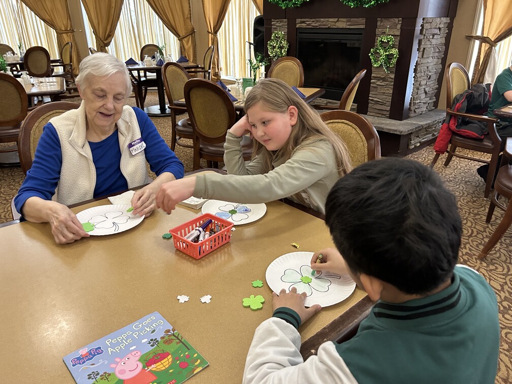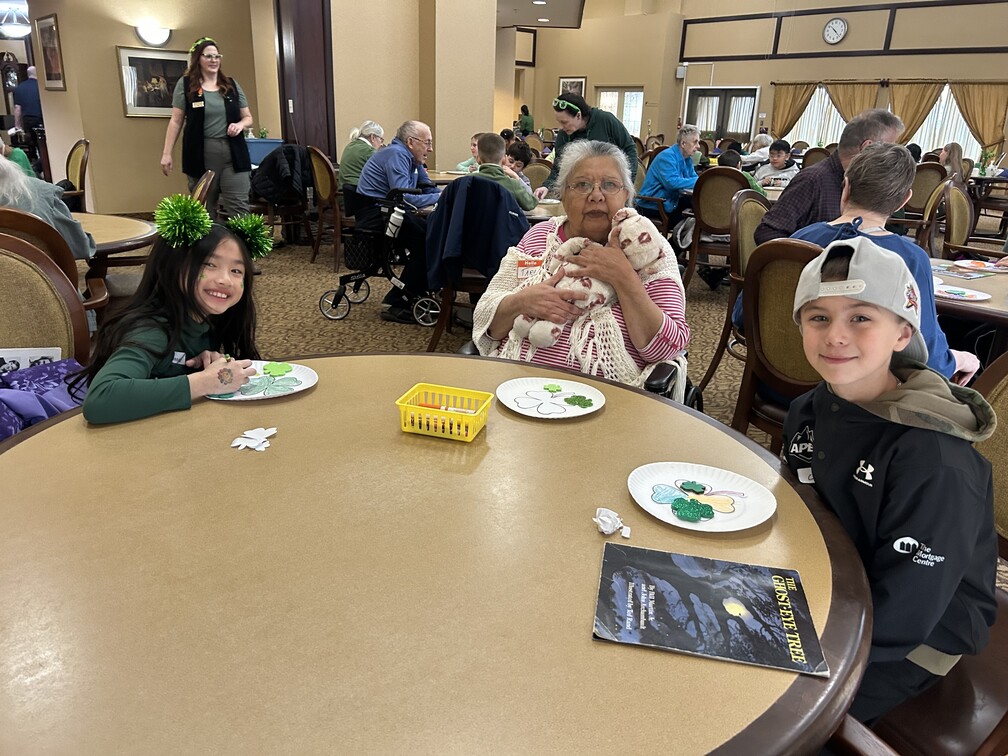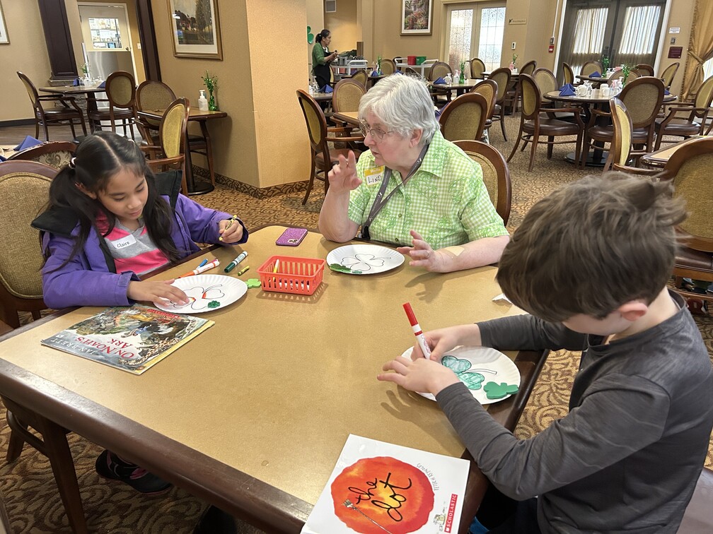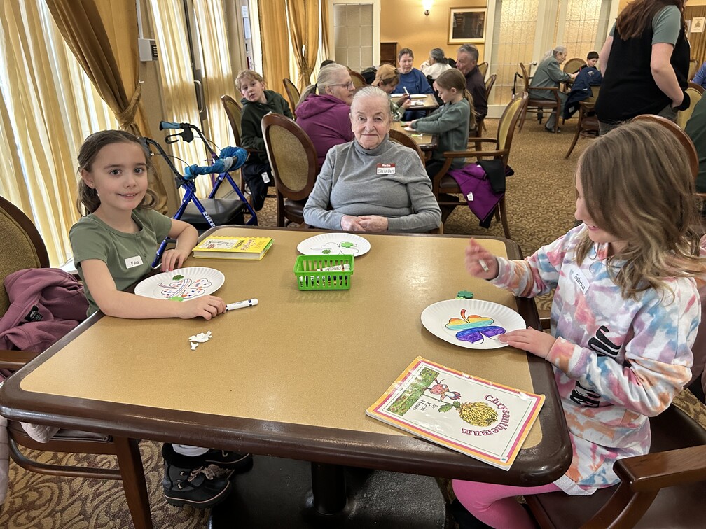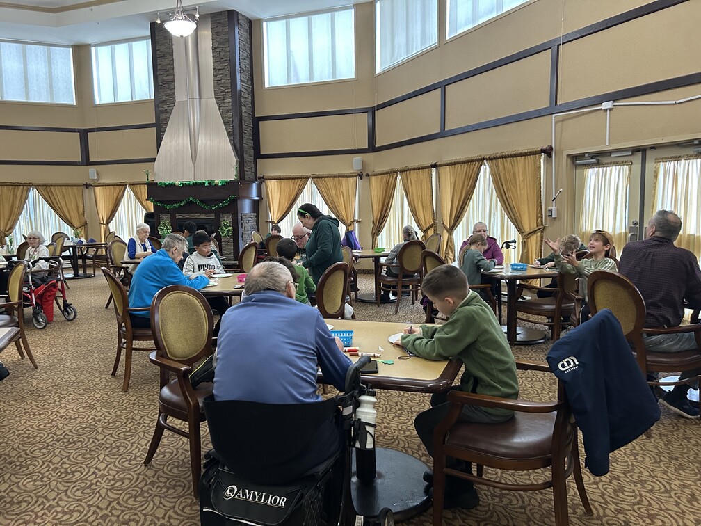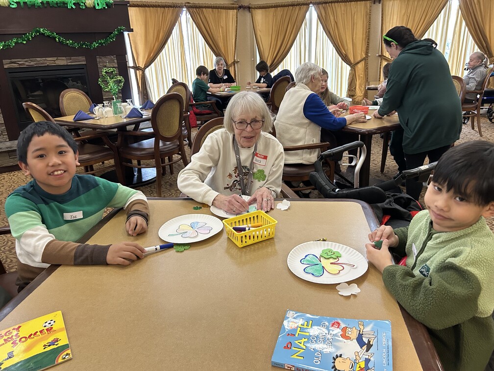 Our students and seniors were excited about today’s visit. With a large grade three class of 30 students and 17 seniors, everyone created colouring sheets that were given out to seniors at their lunch.