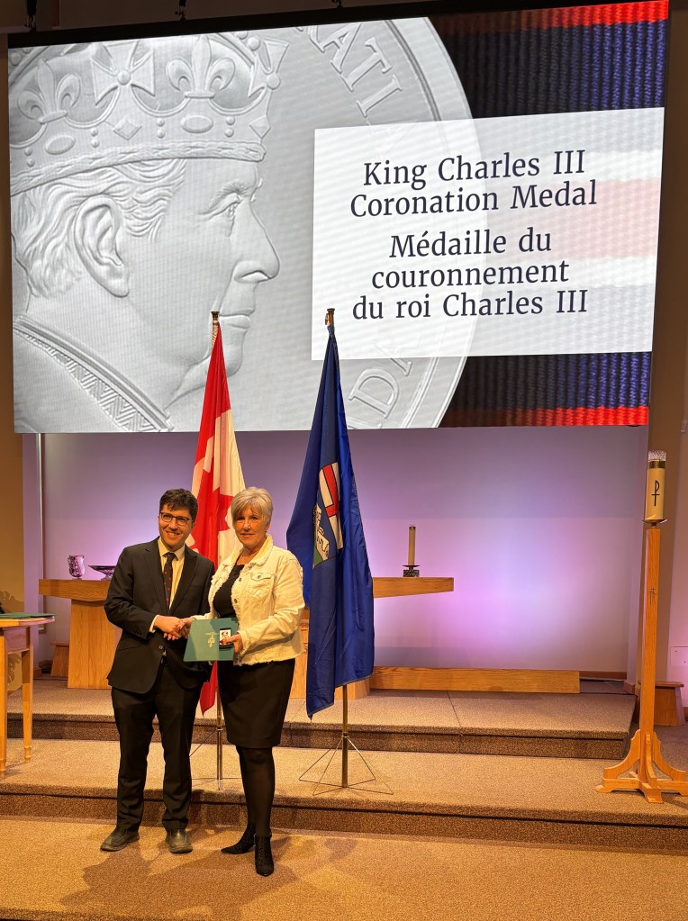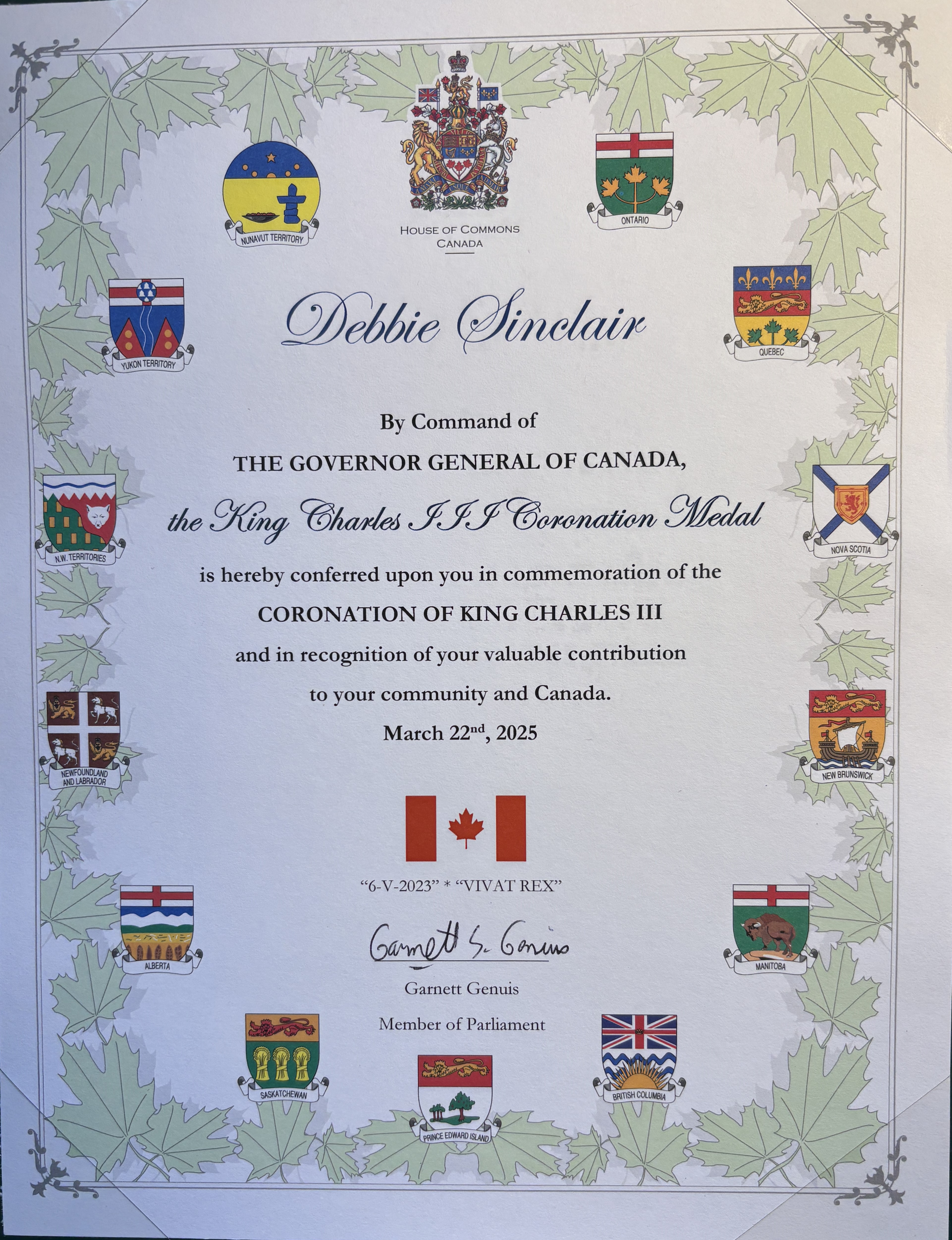 Linking Generations Executive Director Debbie Sinclair was chosen to receive the prestigious honor of being presented the King Charles III Coronation Medal today, recognizing her for her community involvement and commitment to the County of Strathcona and The City of Fort Saskatchewan.