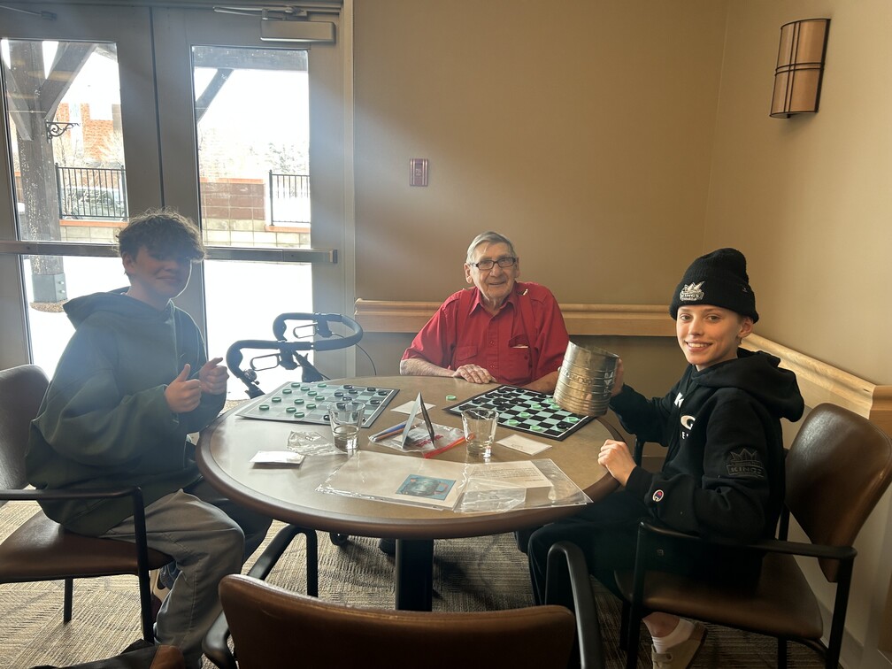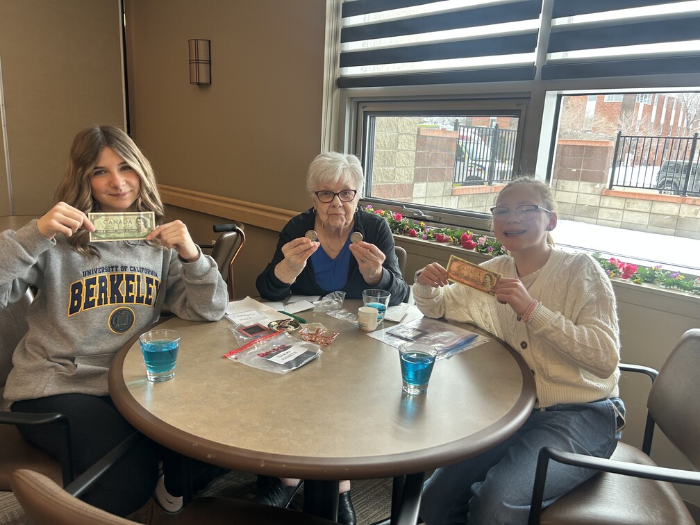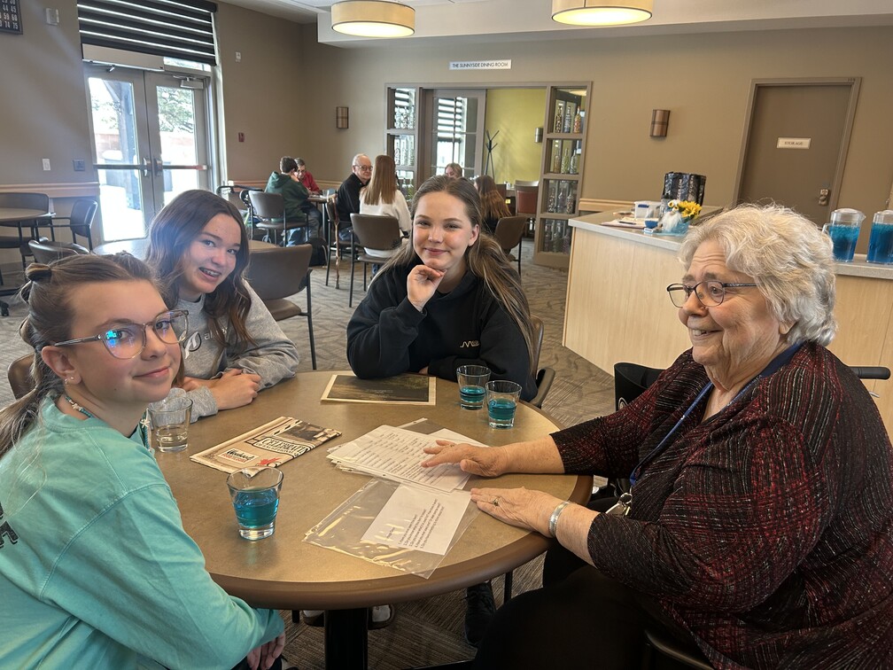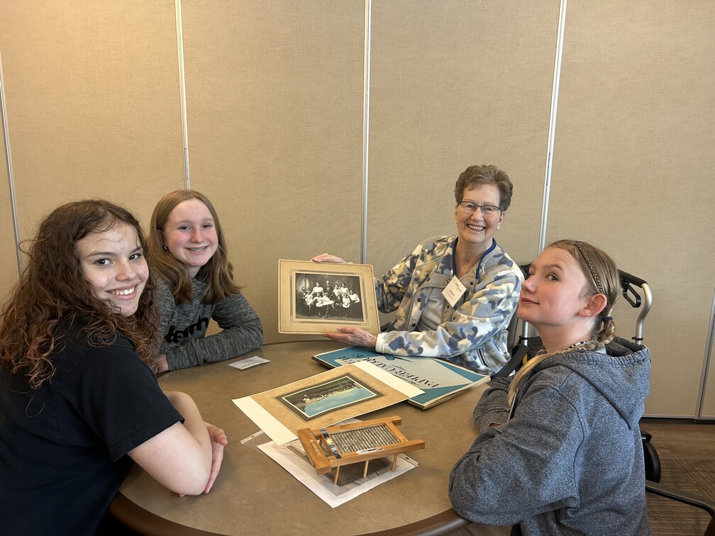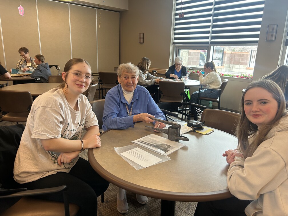 While students from St. John Paul Middle school visited with their linked seniors at Dr Turner Lodge , various items were passed from table to table for our Heritage Visit today with Fort Community Care seniors.