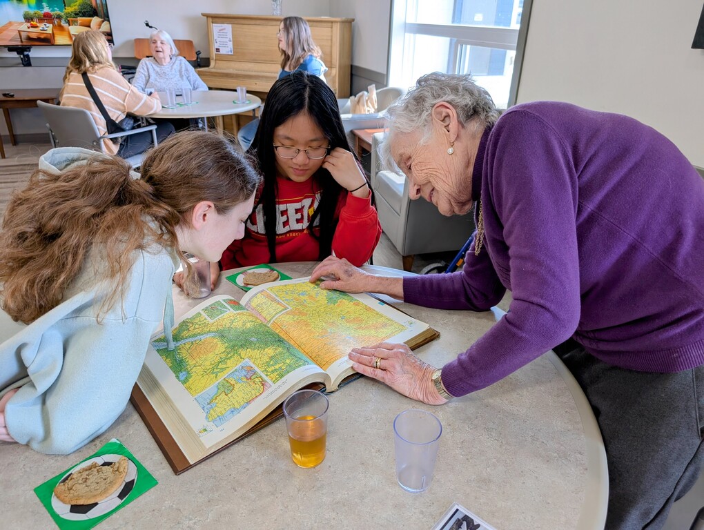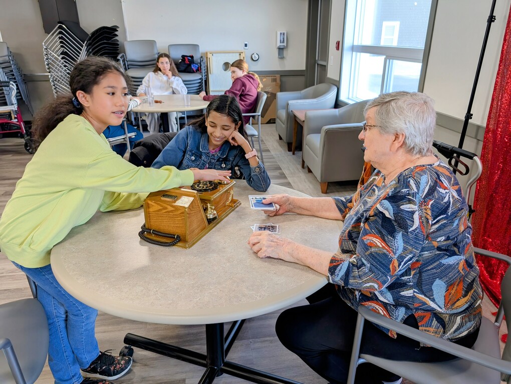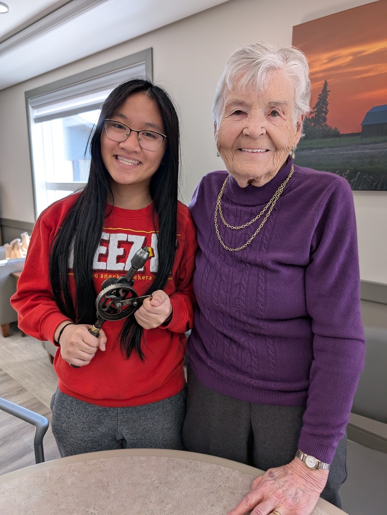 Our OLPH students and Clover Bar Lodge seniors puzzle over some of the items from a long time ago, trying to guess what they are and what their use was.