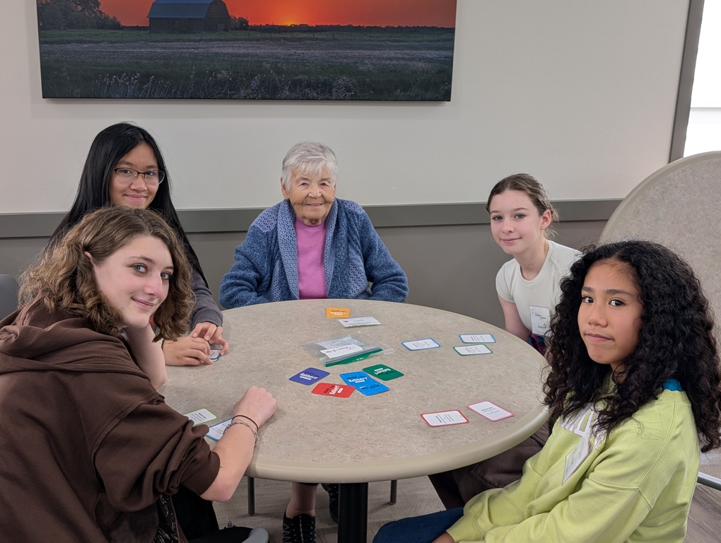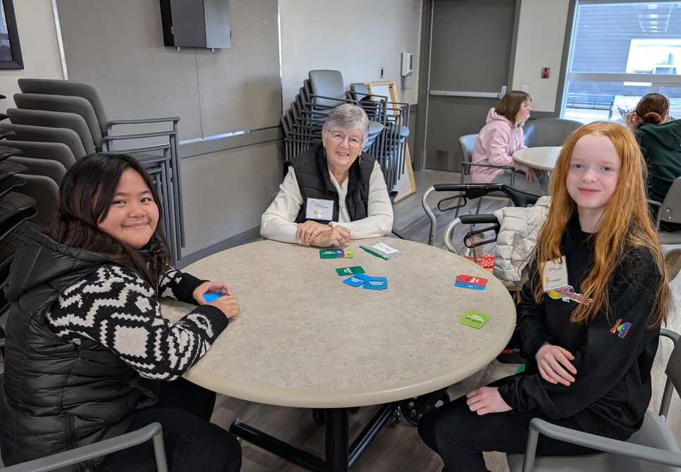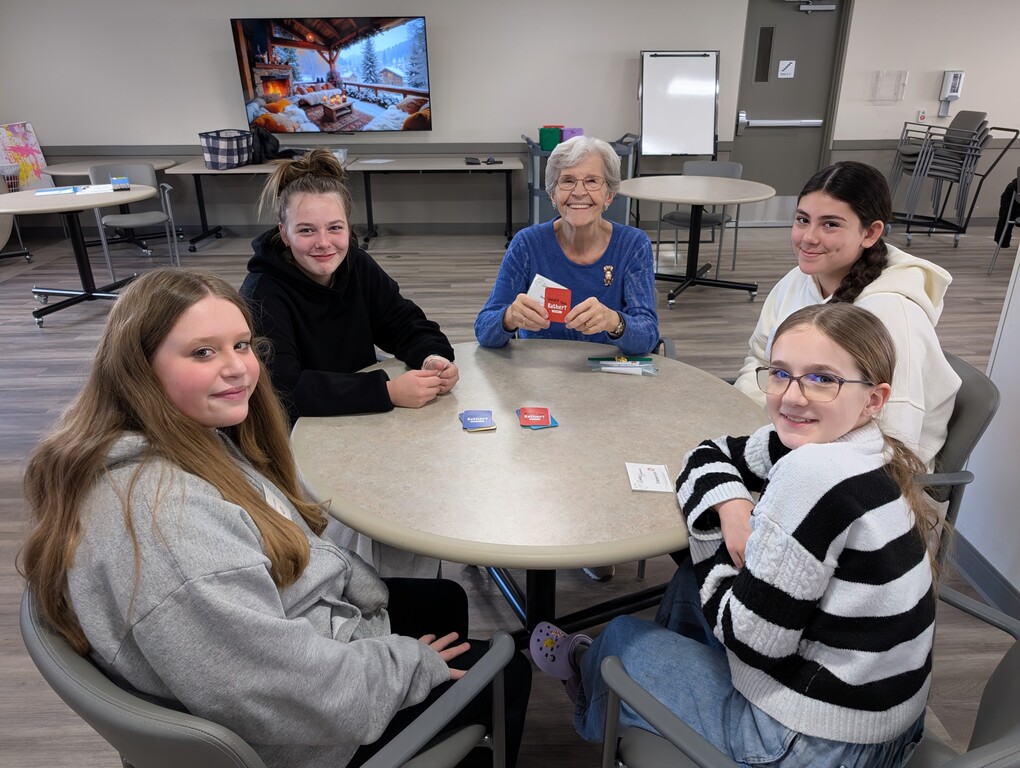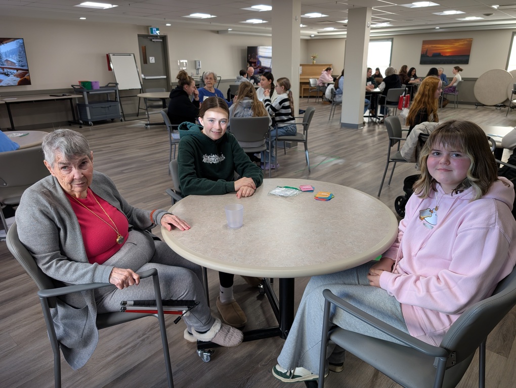 Our Lady of Perpetual Help students spent the afternoon visiting with their linked seniors from Heartland Housing Clover bar Lodge, playing a game called Would you Rather.
