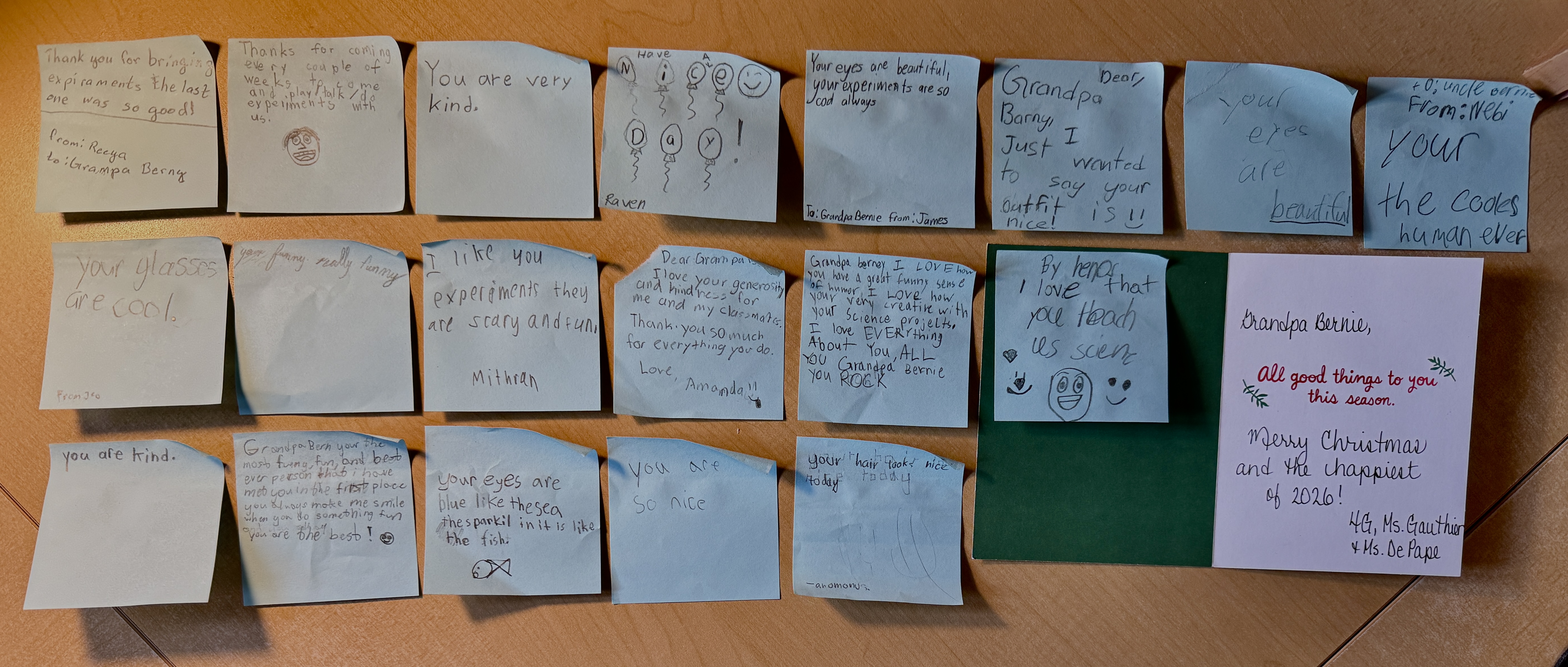 One of Linking Generations’ Volunteer Grandparents received this heartwarming card from his assigned teacher and students.
