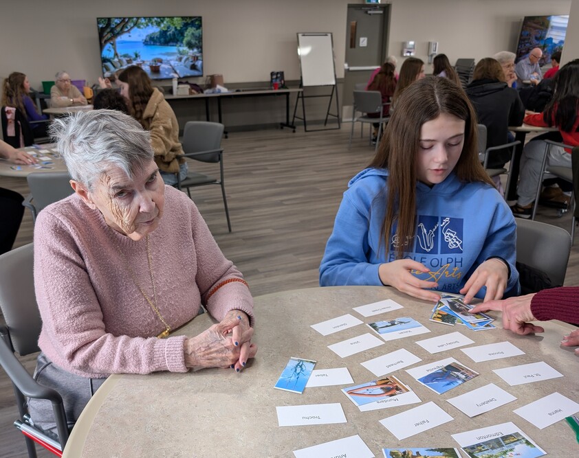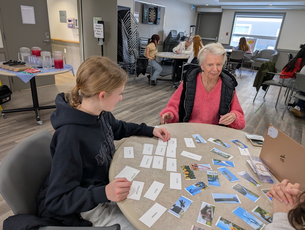 Linking Generations created ‘snapshots’ of a few of these items, and our École Our Lady of Perpetual Help Catholic School students and Clover Bar Lodge seniors guessed the giant replica’s matching location.