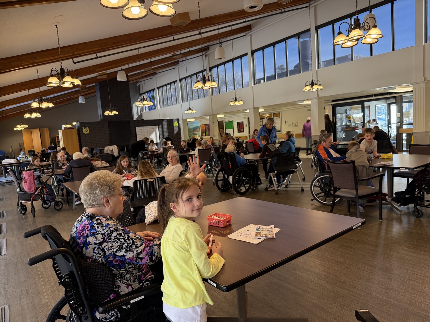 St. Nicholas Elementary grade two students descend on Sherwood Care, the laughter, smiles and giggles are seen and heard throughout the dining room.