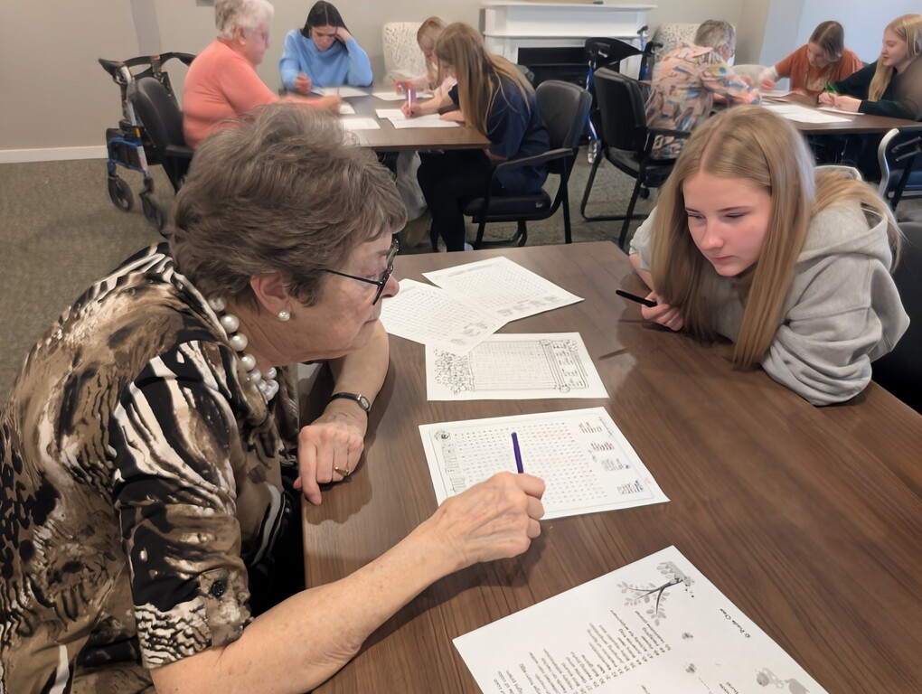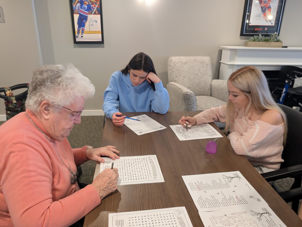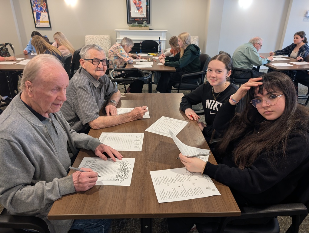 Gathered around crosswords and word searches, this allowed for easy and engaging conversation between students and seniors. The shared activities served as a catalyst for laughter and storytelling, helping everyone find common ground and fostering friendships.