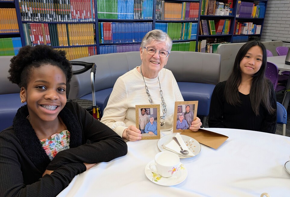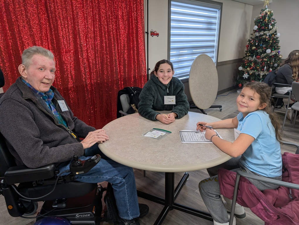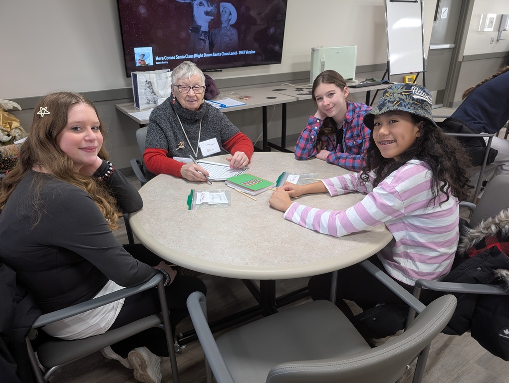 Our Christmas visit at Heartland Housing Clover Bar Lodge brought our Ecole Our Lady of Perpetual Help (OLPH) students together with their linked seniors, to share traditions and stories from past and present days.