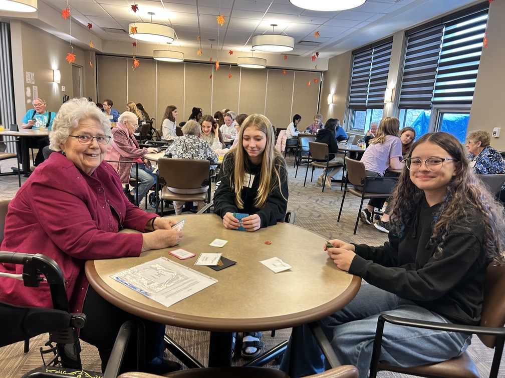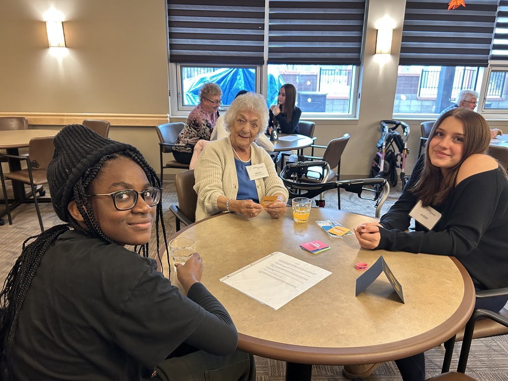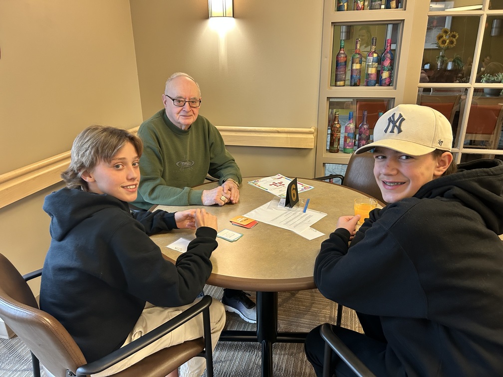 Our intergenerational visit today was spent with seniors and students connecting through playing card games and board games.
