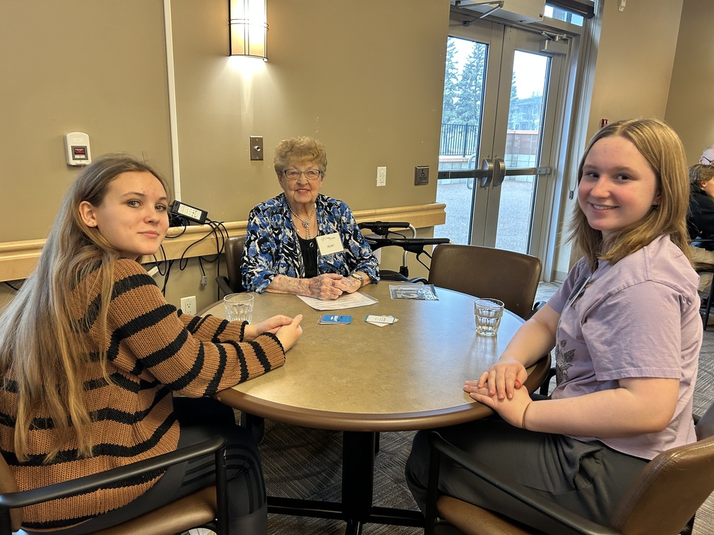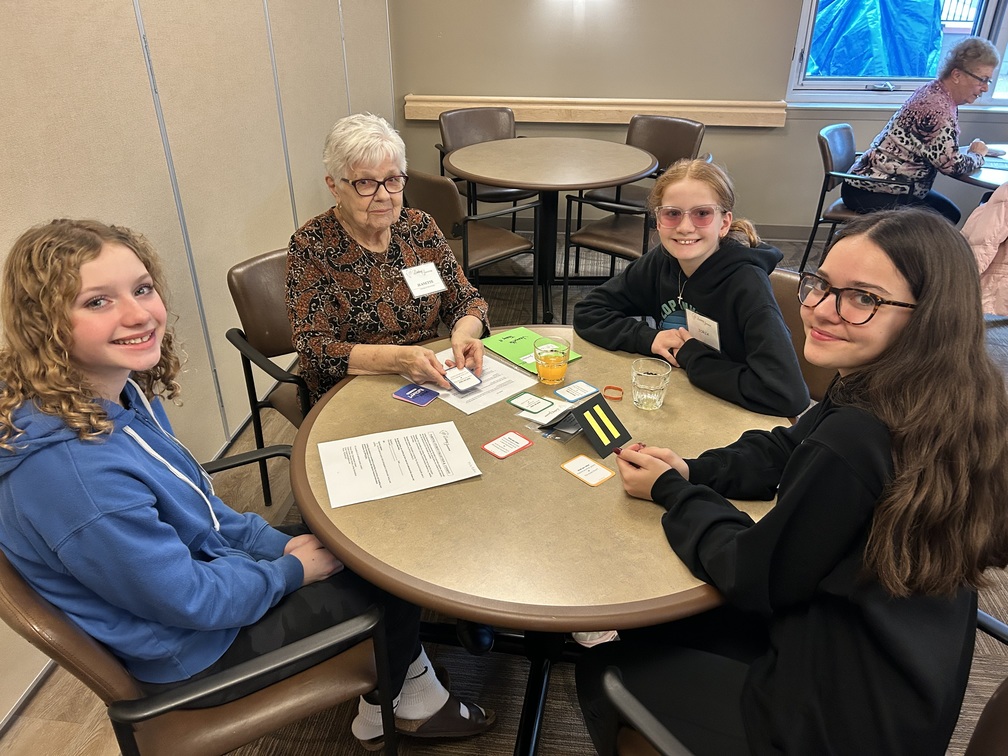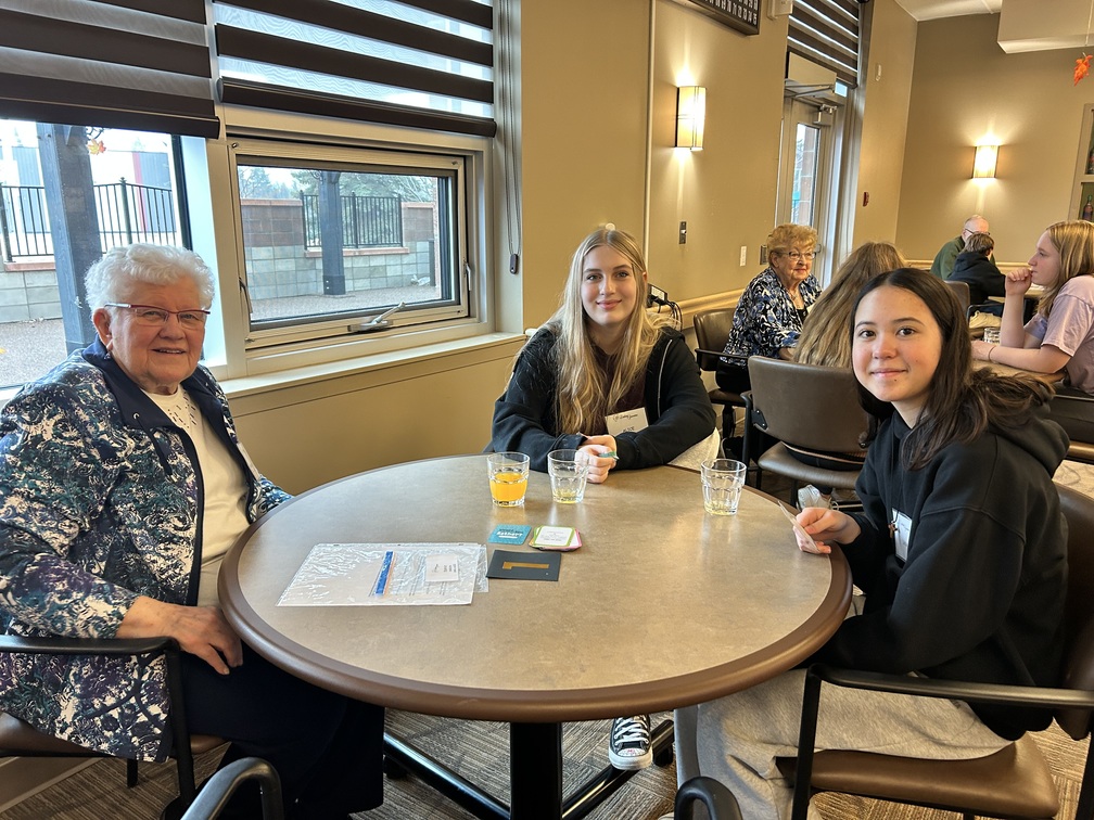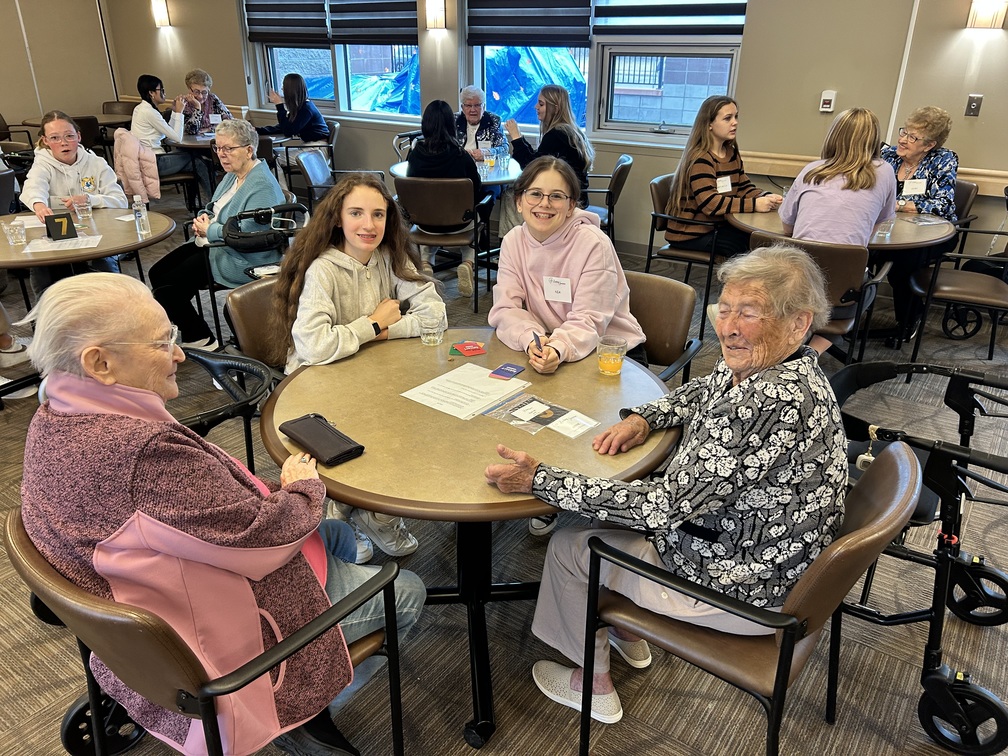 Our Lady of Perpetual Help students spent the afternoon visiting with their linked seniors from Heartland Housing Clover bar Lodge, playing a game called “Would you Rather”.