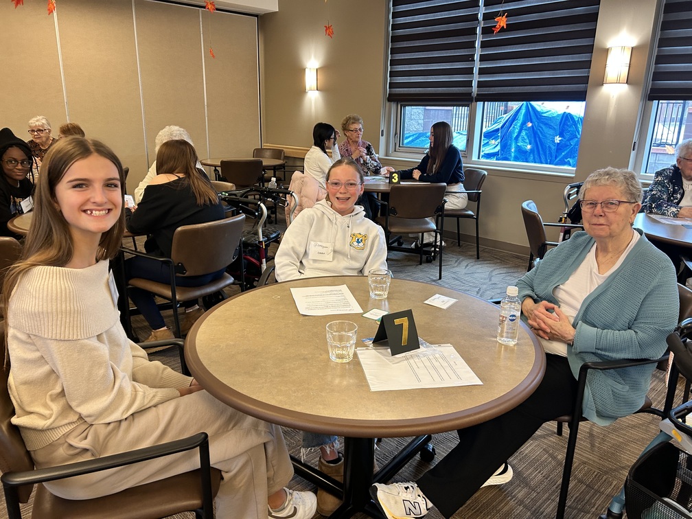 Lady of Perpetual Help students visiting with their seniors from Heartland Housing Clover bar Lodge