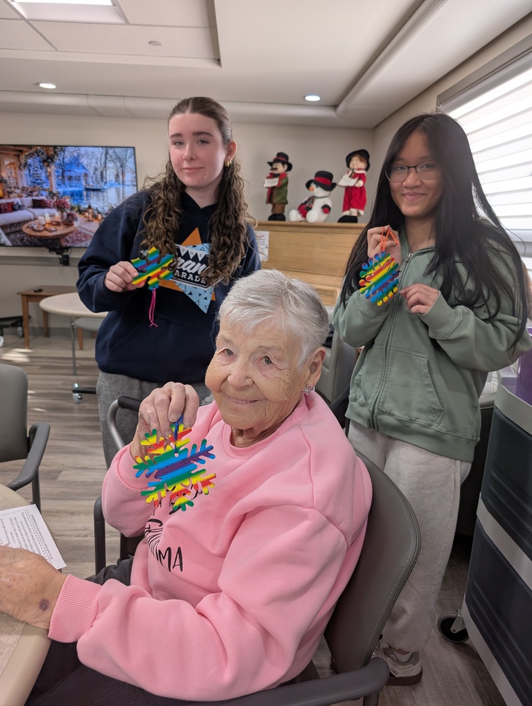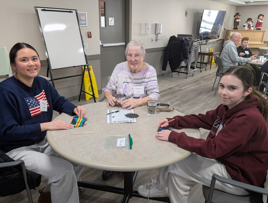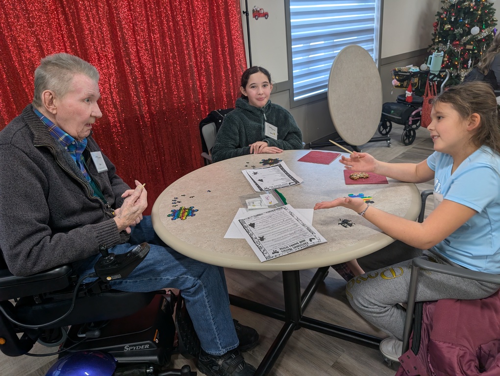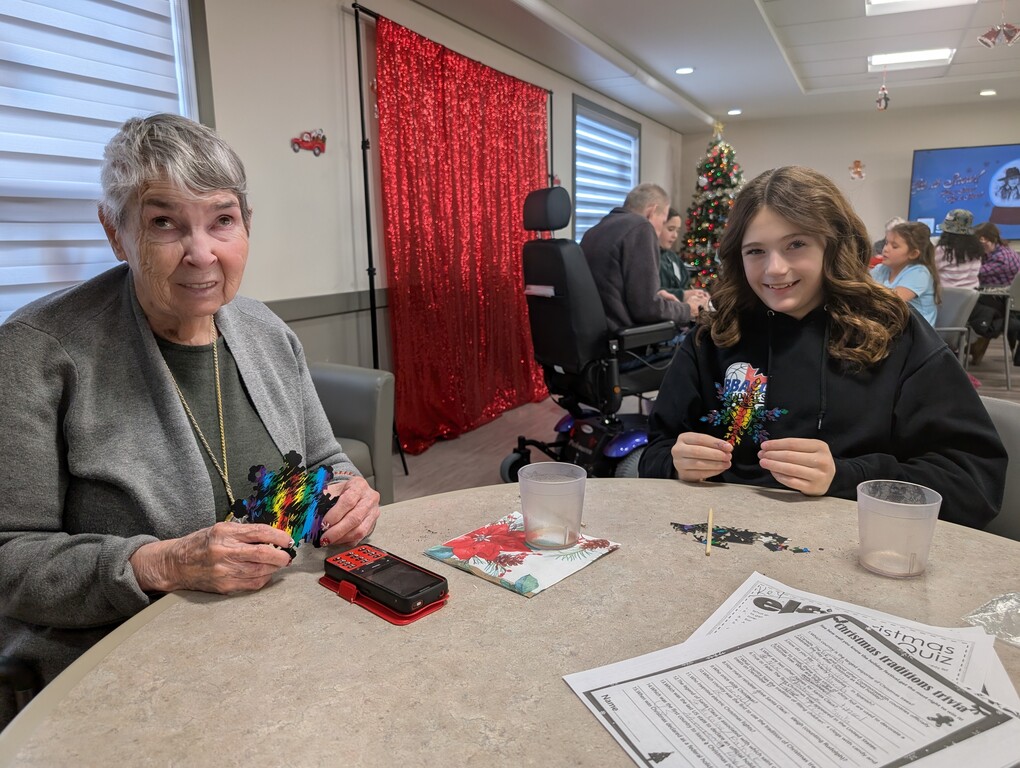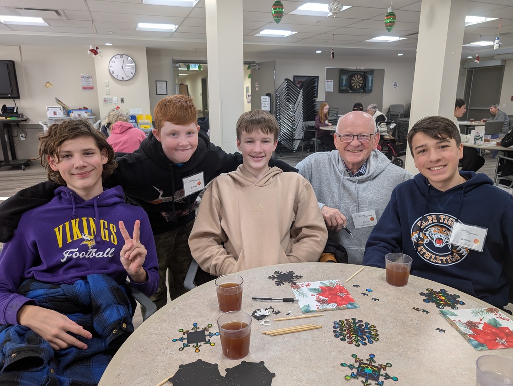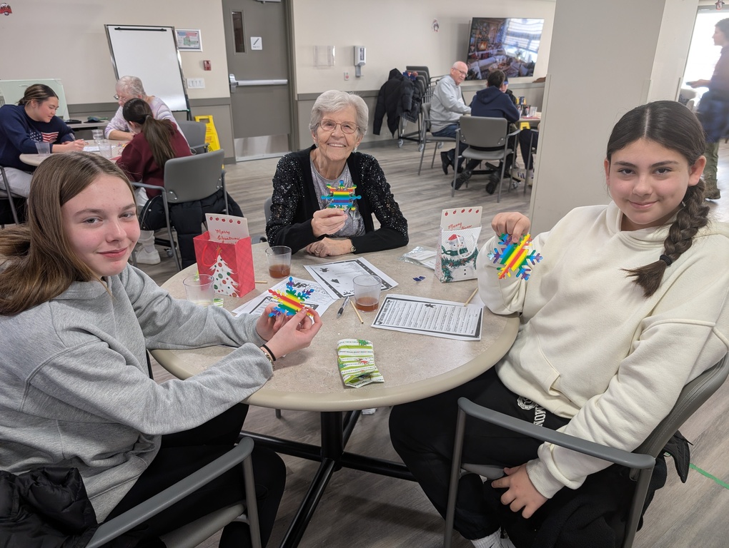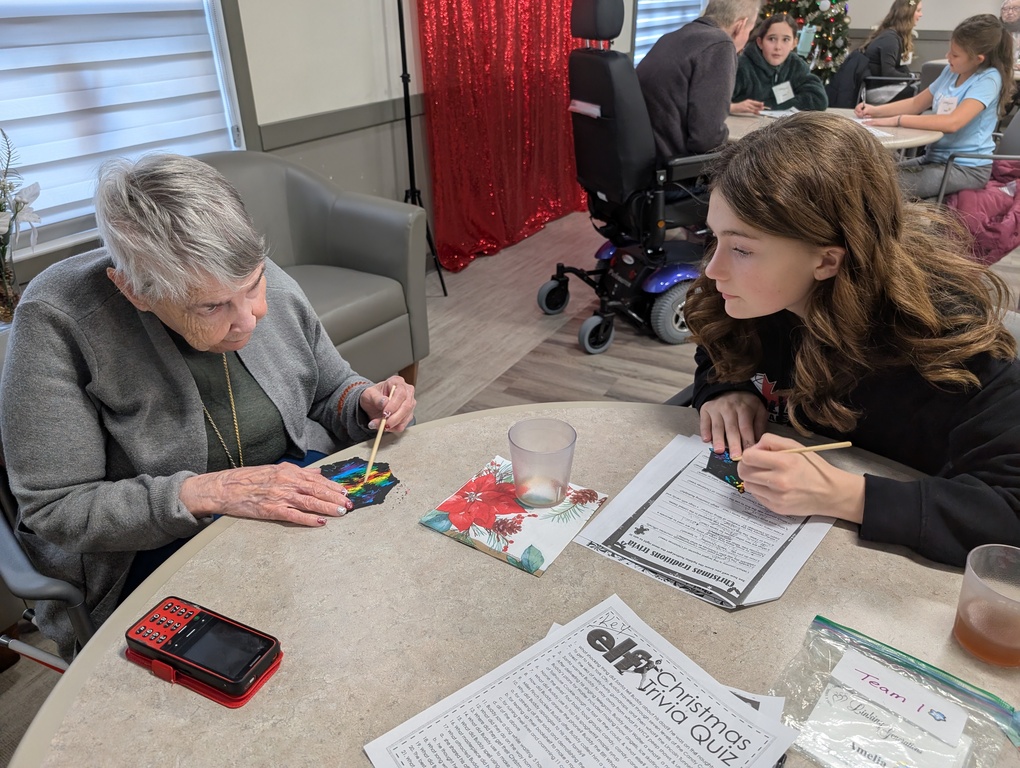 The teams played Christmas Trivia and spent time crafting together. Our students were very interested in hearing some old traditions of Christmas past that our seniors shared.